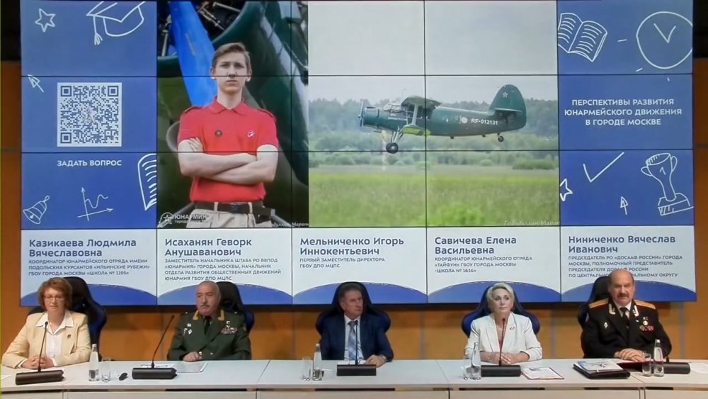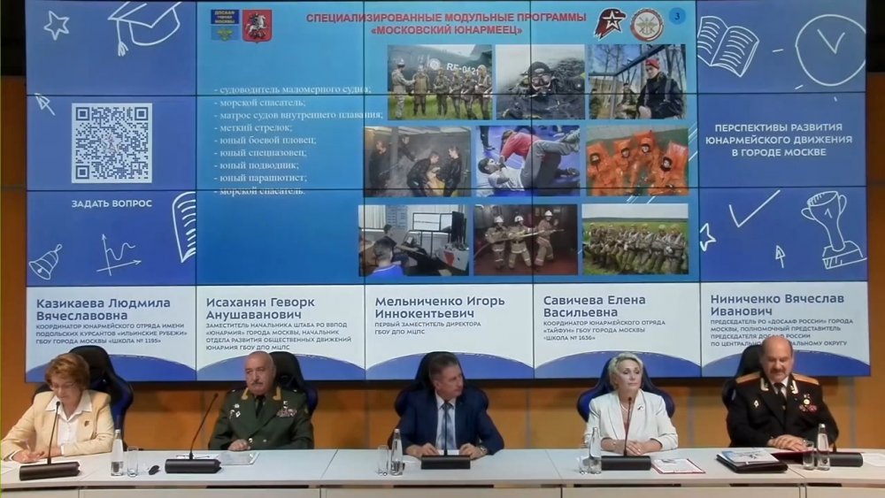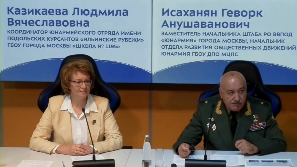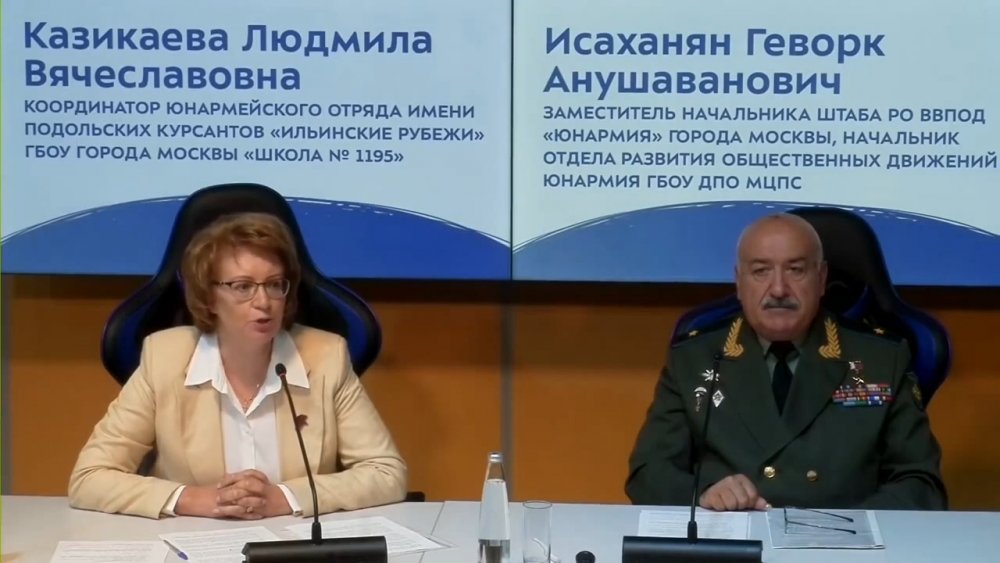 В панельной дискуссии на тему: «Перспективы развития юнармейского движения в городе Москве» приняли участие заместитель начальника штаба ВВПОД «ЮНАРМИЯ» города Москвы, Герой Российской Федерации генерал-майор Геворк Анушаванович Исаханян, первый заместитель директора центра полковник Игорь Иннокентьевич Мельниченко, начальники штабов местных отделений ВВПОД «ЮНАРМИЯ » города Москвы, координаторы юнармейских отрядов, эксперты профессиональных и педагогических сообществ.
