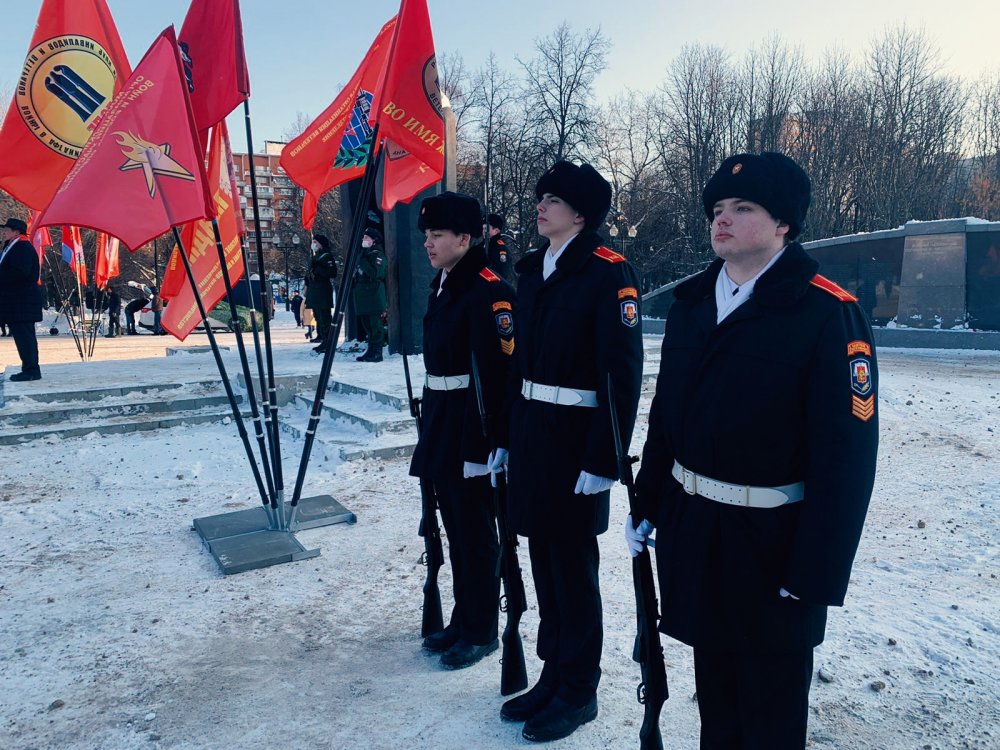 На митинге присутствовал сводный взвод Почетного караула кадет Школы 1324 под командованием майора Кислова В.А. инструктора по парашютно-десантной подготовке ДОСААФ города Москвы.