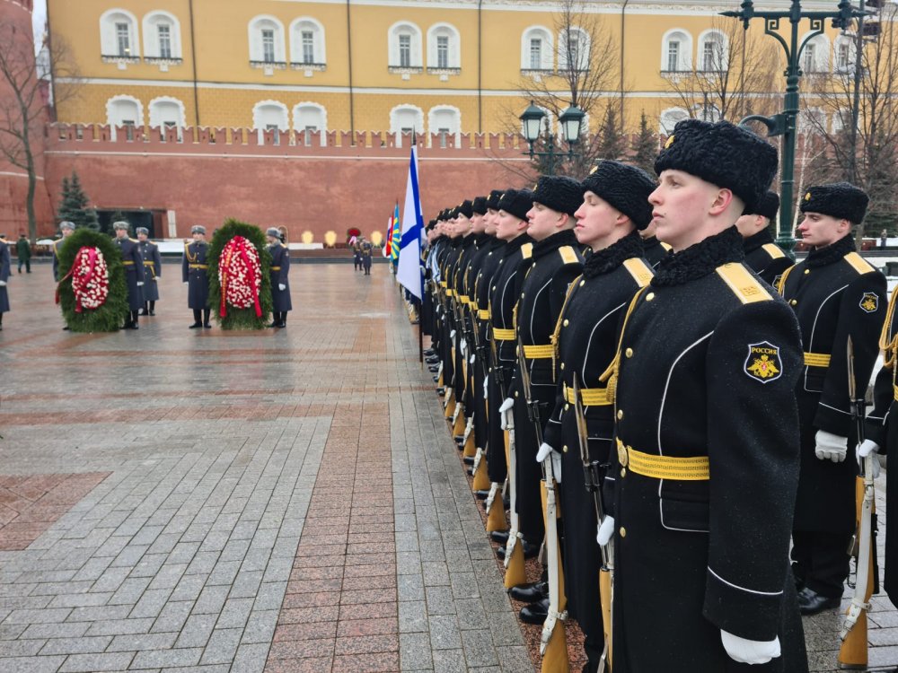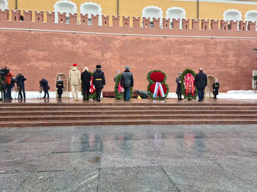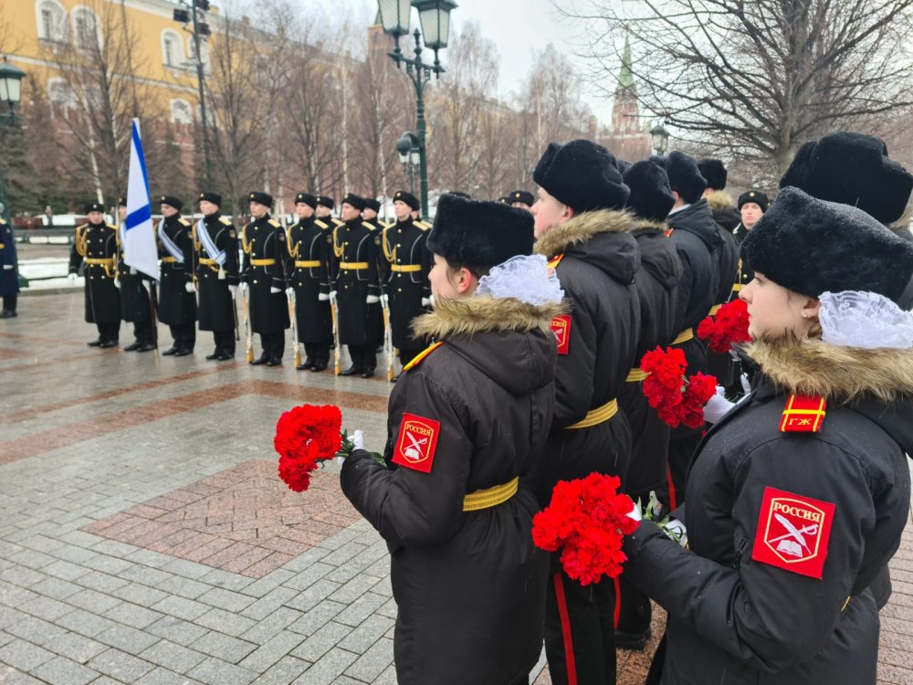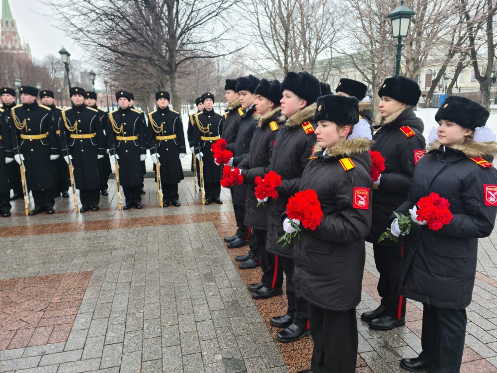 Церемония возложения цветов и венков в Александровском саду в День защитника Отечества