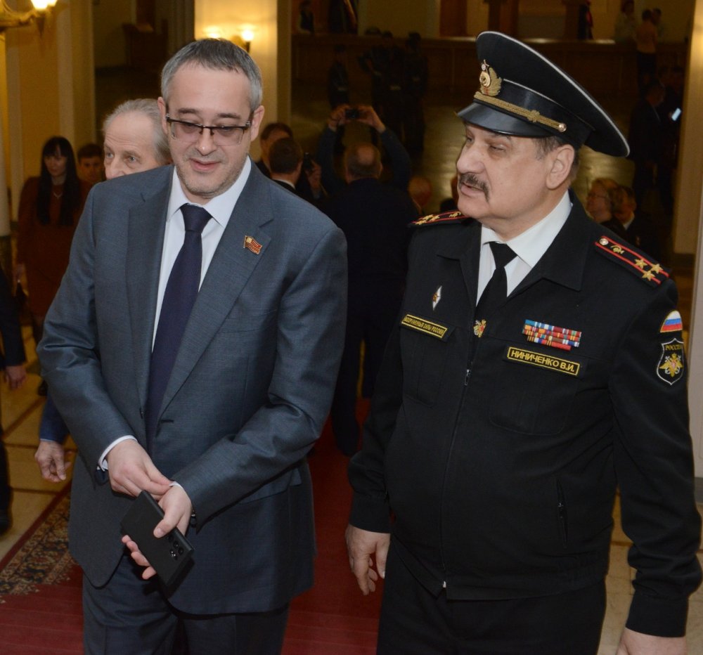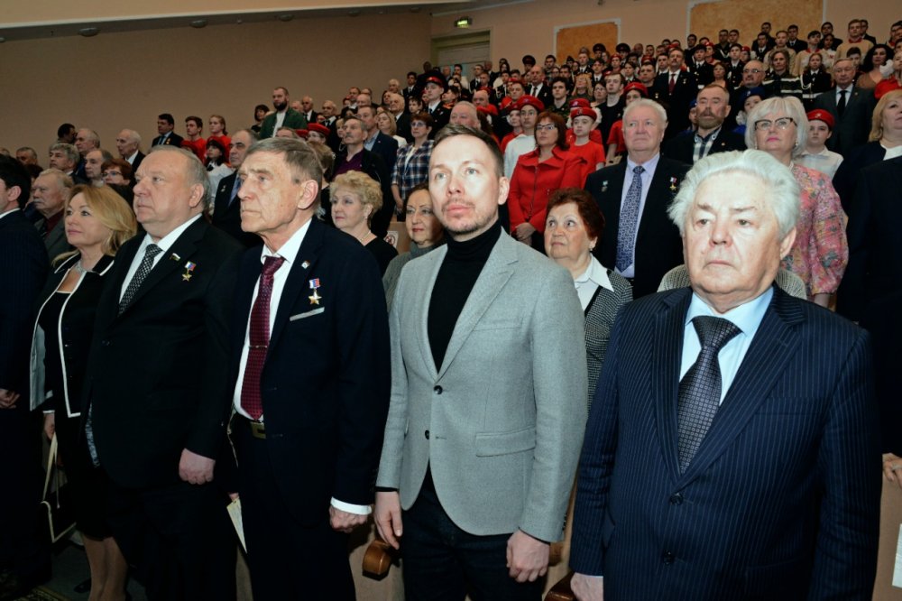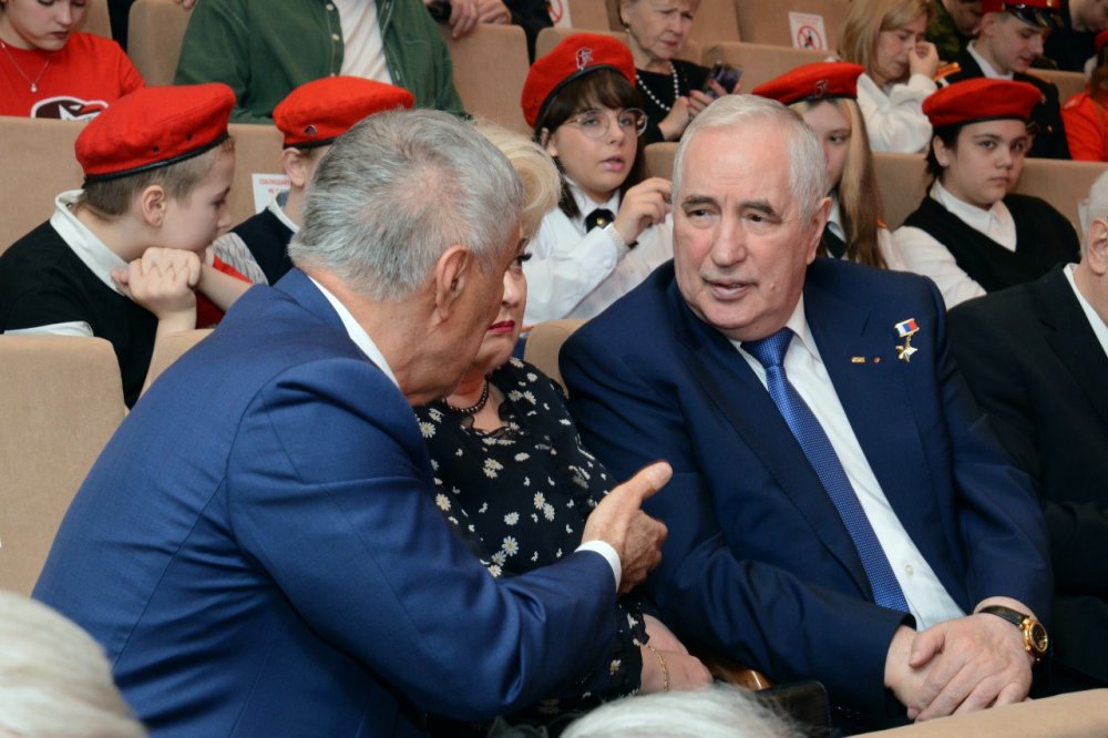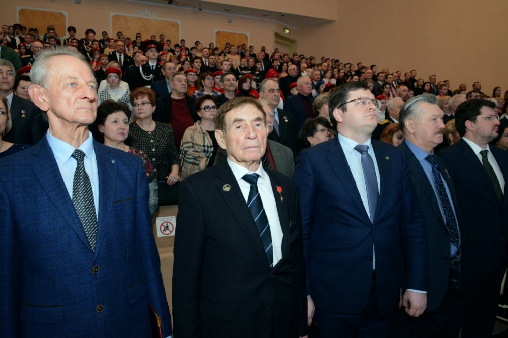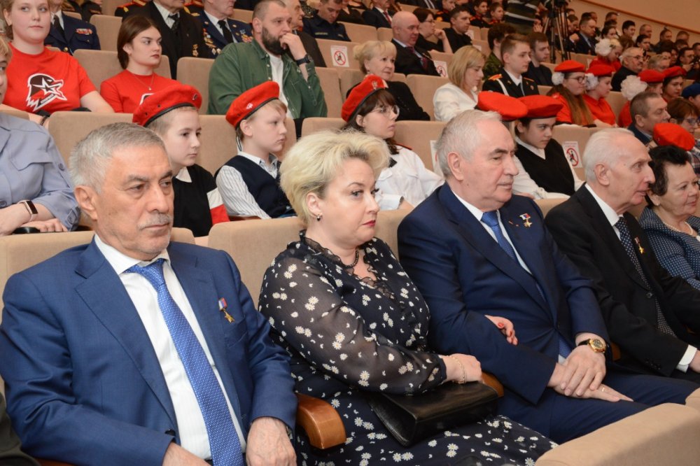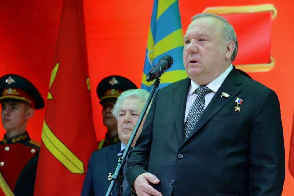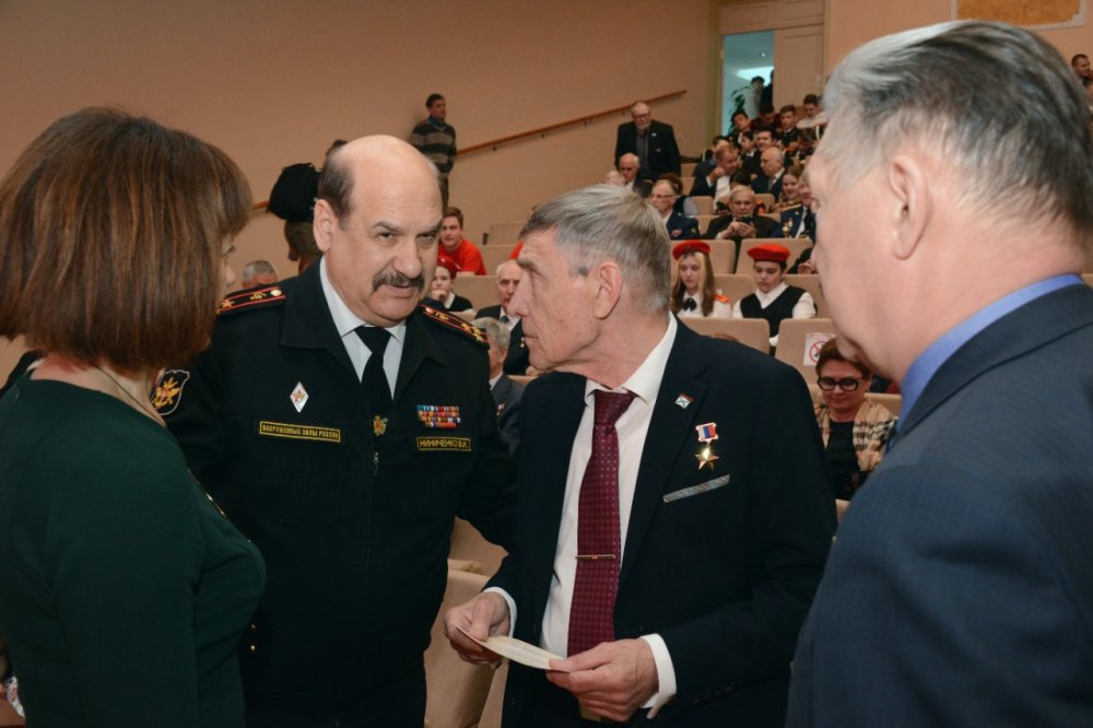 Слова поздравления и добрые пожелания от Председателя ДОСААФ России А.П. Колмакова передал Председатель ДОСААФ города Москвы В.И. Ниниченко. Вячеслав Иванович отметил, что оборонная организация, которой исполнилось в этом году 95 лет, являлась одним из звеньев, составляющих Вооруженные Силы: армию, авиацию, флот. Добавив, что «Герои России, Герои Советского Союза вносили и вносят большую лепту в деятельность оборонной организации, которая выполняет государственные задачи. ДОСААФ готов в любую минуту встать на защиту Отечества, где уже стоят ее воспитанники».