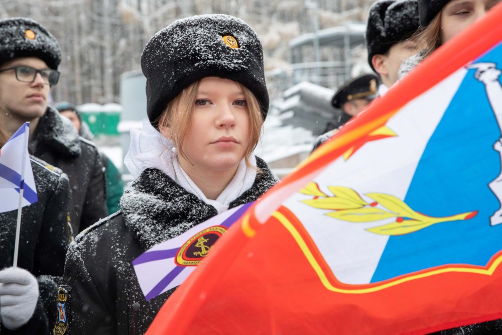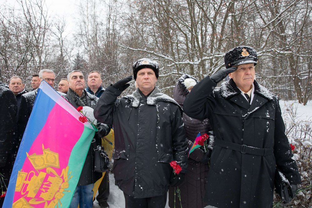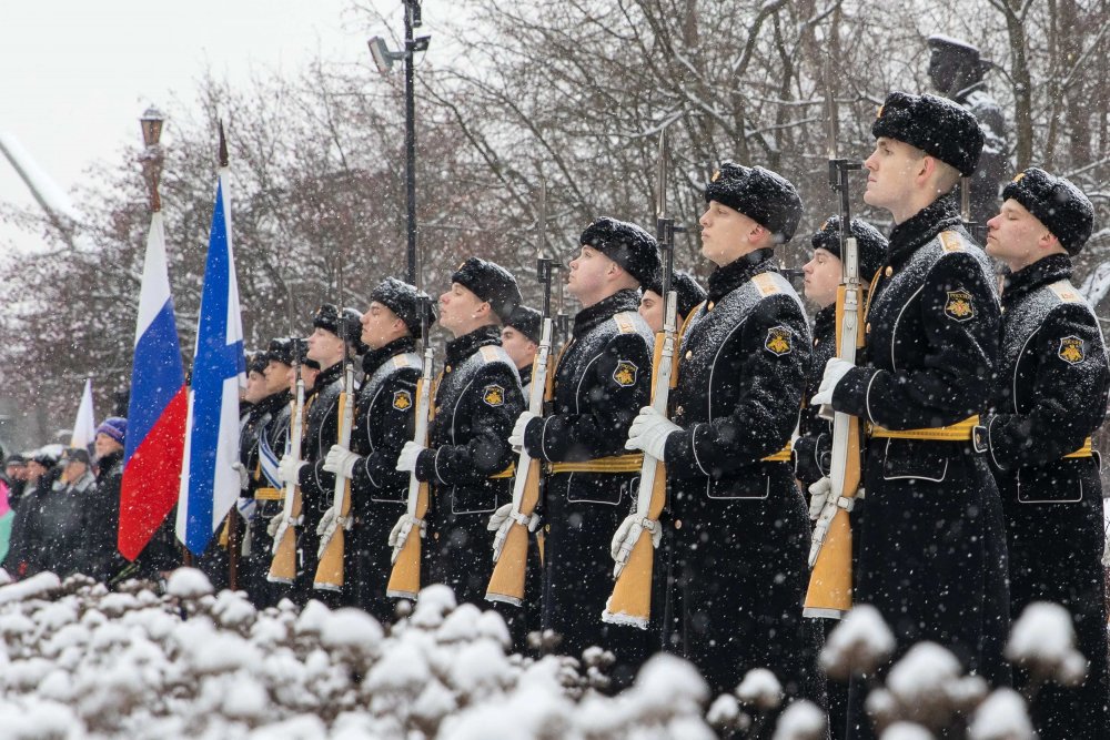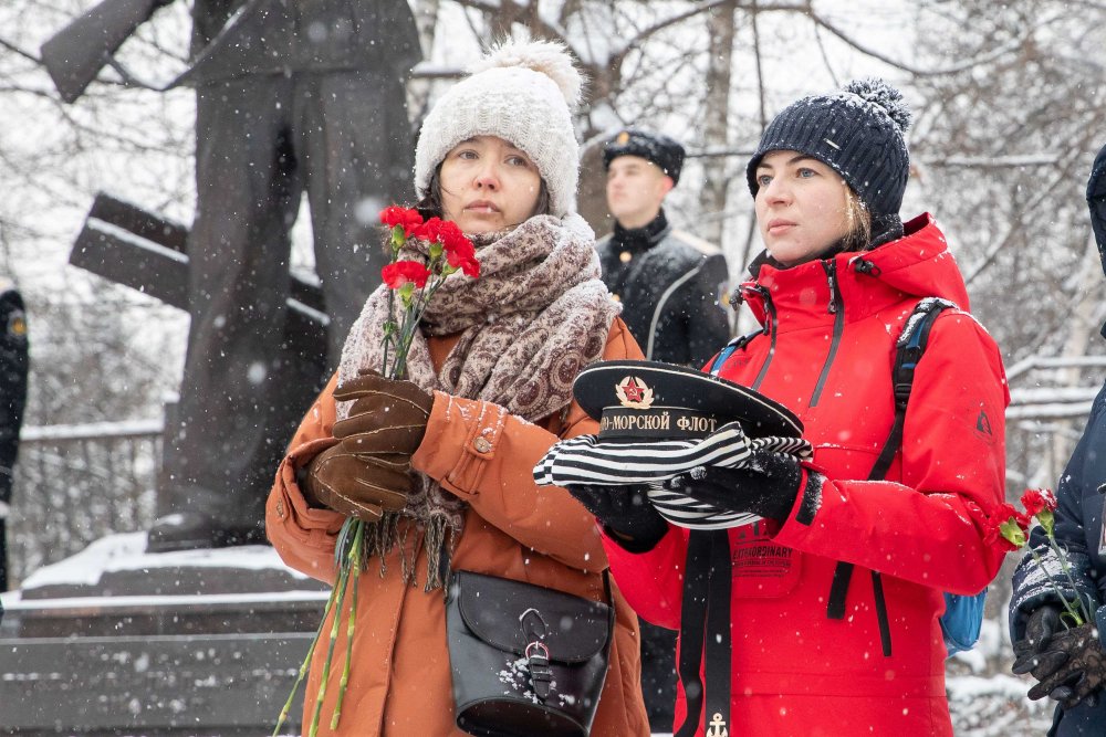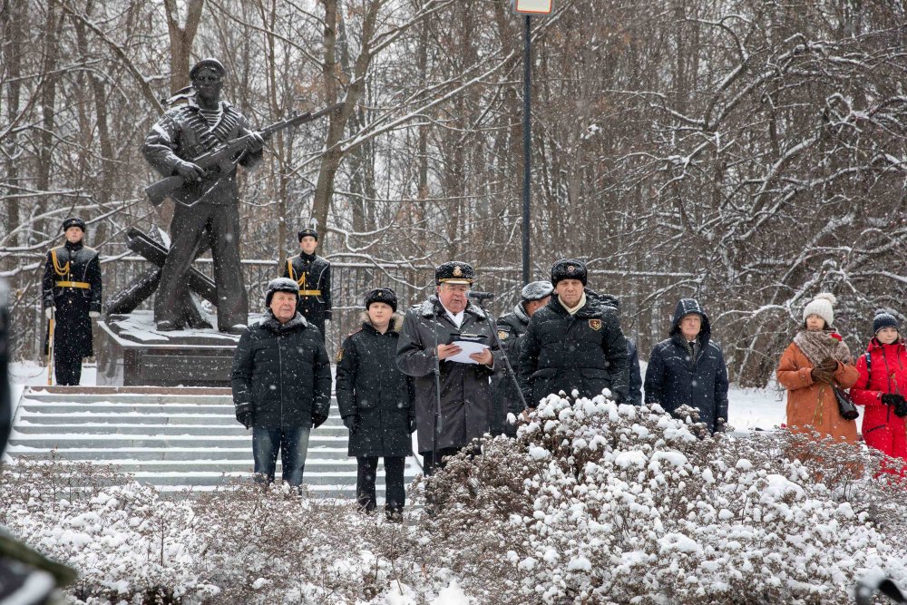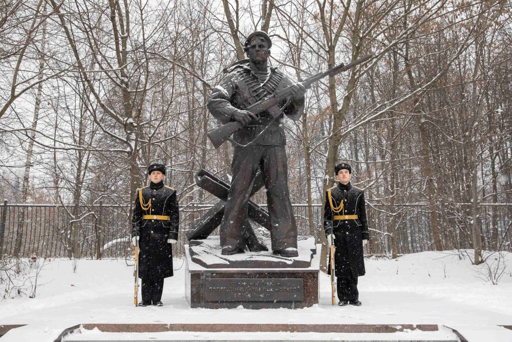 Участники церемонии возложил цветы и венки к памятнику военным морякам, погибшим в Битве за Москву в 1941-1942 годах, который расположен в военно-морской локации музея «Г.О.Р.А.».