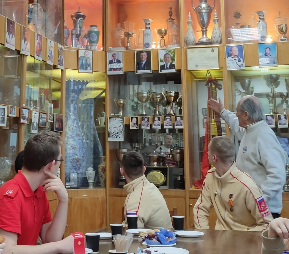 Заслуженный ветеран оборонной организации К.Г. Нажмудинов рассказал ребятам много интересного об известном аэроклубе и провел по залам, где располагались члены политбюро и правительства во время важных мероприятий.