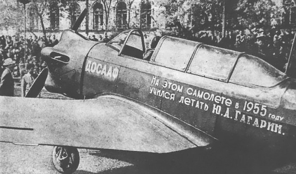 25 октября 1954 года Юрий Гагарин пришёл в Саратовский аэроклуб ДОСААФ. В 1955 году он совершил первый самостоятельный полёт на самолёте Як- 18. Всего в ДОСААФ он выполнил 196 полётов и налетал 42 часа 23 минуты.