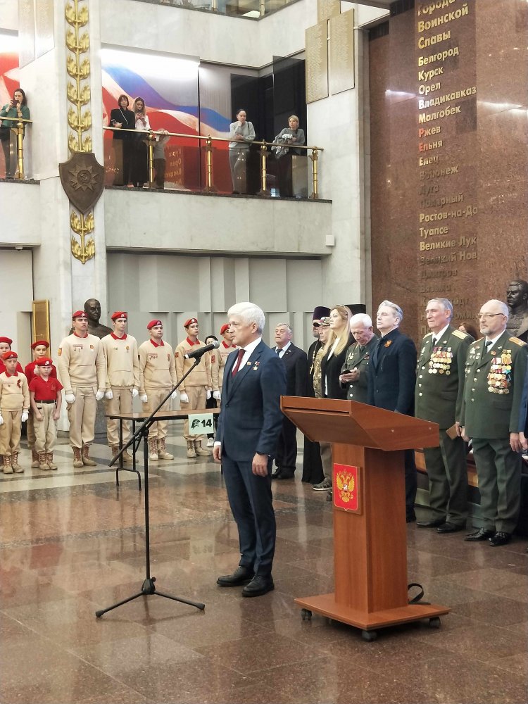 Перед началом мероприятия почетные гости возложили цветы в зале памяти и скорби Музея Победы. Затем в зале полководцев состоялась торжественная церемония принятия клятвы учащимися образовательных организаций г. Москвы из 23 московских школ. Ребята пообещали уважать и чтить традиции старших поколений, быть преданными своему Отечеству.