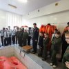 На полигоне борьбы за живучесть надводного корабля (БЖК) выпускники морского центра провели показательные тренировки по тушению судового пожара и заделки пробоин, а также продемонстрировали использование индивидуальных и коллективных спасательных средств в бассейне центра.