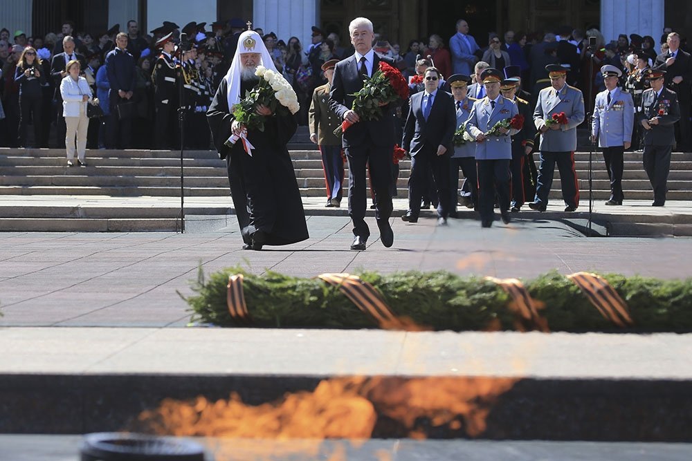 «Товарищи офицеры и кадеты, дорогие ветераны и москвичи, поздравляю вас с днем святого Георгия Победоносца, небесного покровителя Москвы, поздравляю с днем флага и герба нашего города, поздравляю с наступающим Днем Победы», - сказал он, - сегодня на Поклонной горе, святом для каждого москвича месте, собрались люди разных поколений, которых связывает любовь к родине, беззаветное служение отчизне. Вместе с нами участники Великой Отечественной войны. Ваш победный путь - это история о том, что нет ничего священнее защиты Отечества, нет ничего сильнее правды и добра, нет ничего счастливее возвращения домой с полей сражений, и нет ничего важнее сохранения исторической памяти и победных традиций нашего народа".