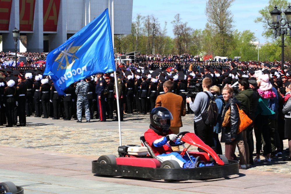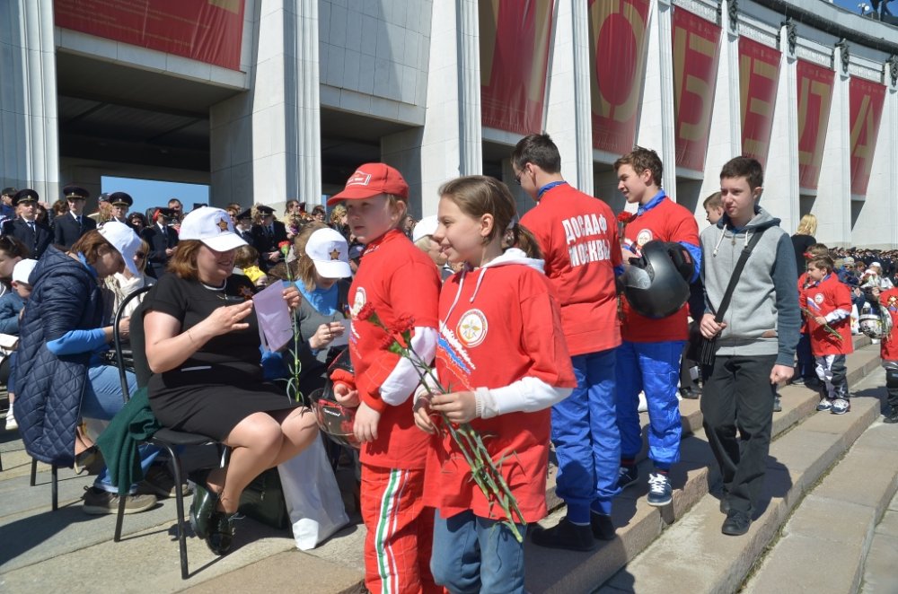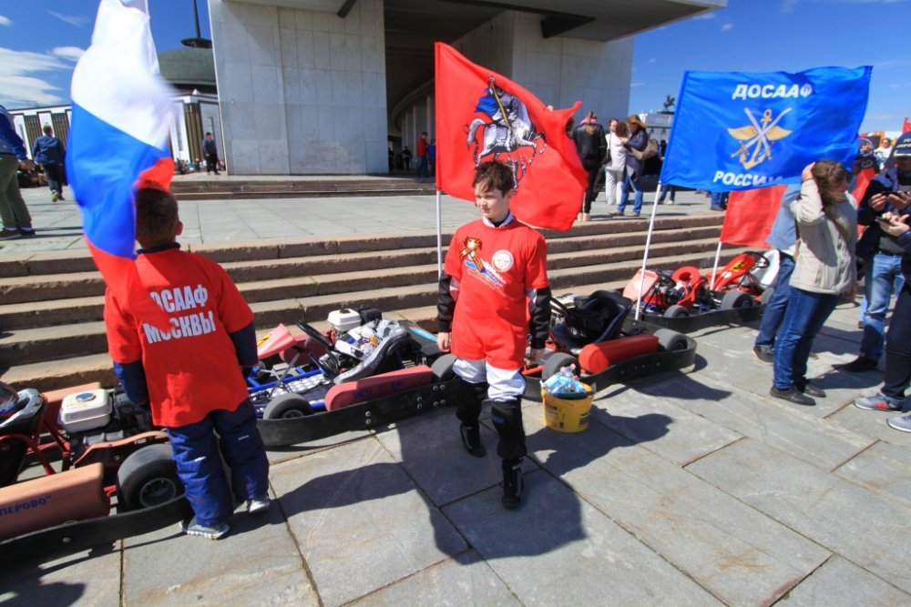 15 лучших картингистов Регионального отделения ДОСААФ России г. Москвы приняли участие в параде кадетов, которые дружным строем проехали на картах перед зрителями и участниками парада, открыв выступление художественной части мероприятия.