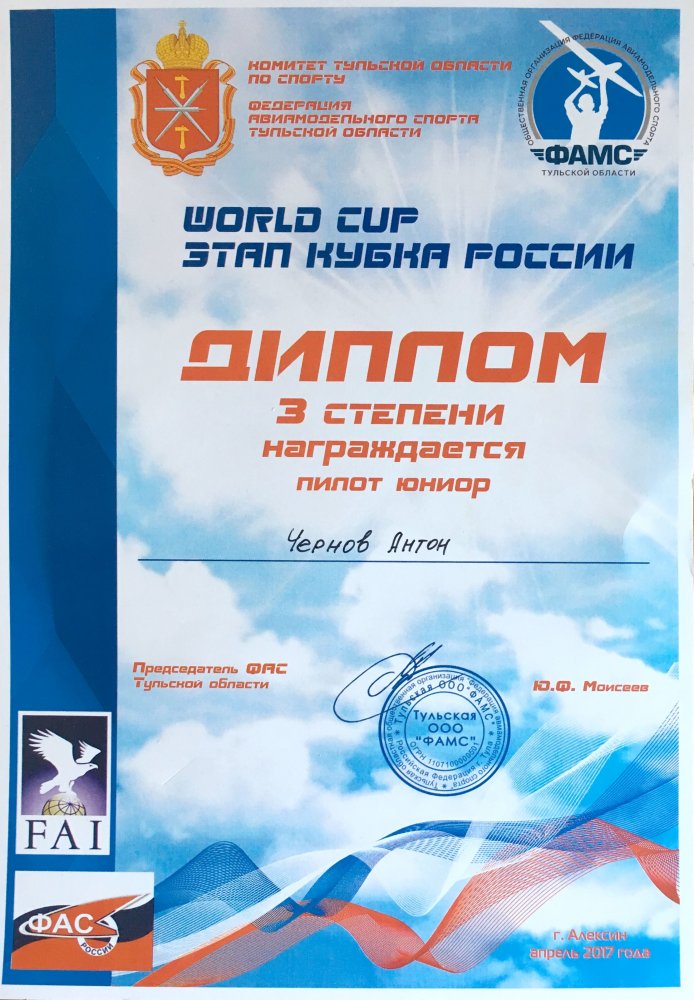 6 по 9 мая 2017 года в г. Подольск Московской области состоялся первенство России, Кубок ФАС 2017 года по авиамодельному спорту. команда 5 чел. юниоры.