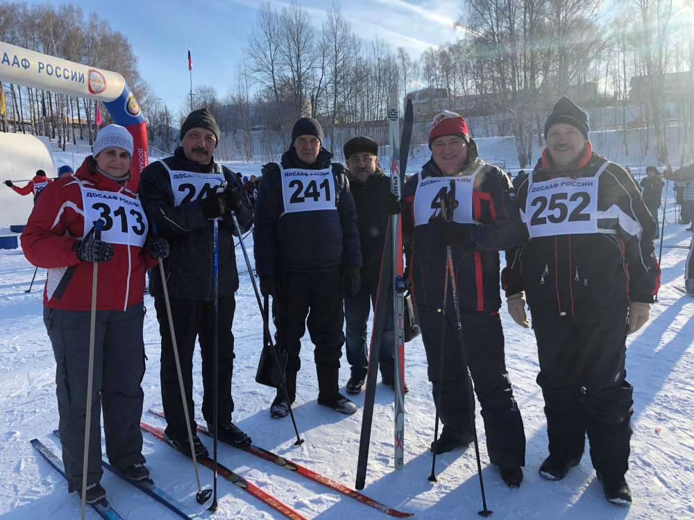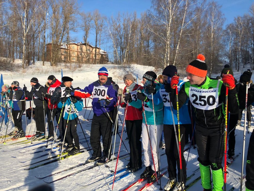 Прекрасный зимний солнечный день, искрящийся снег, накатанная лыжня и отличное настроение! С этим замечательным настроением на старт первыми вышли руководители ДОСААФ России во главе с Председателем Колмаковым А.П.