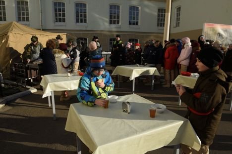 Попробовали и, в буквальном смысле, отведали горячую солдатскую кашу.