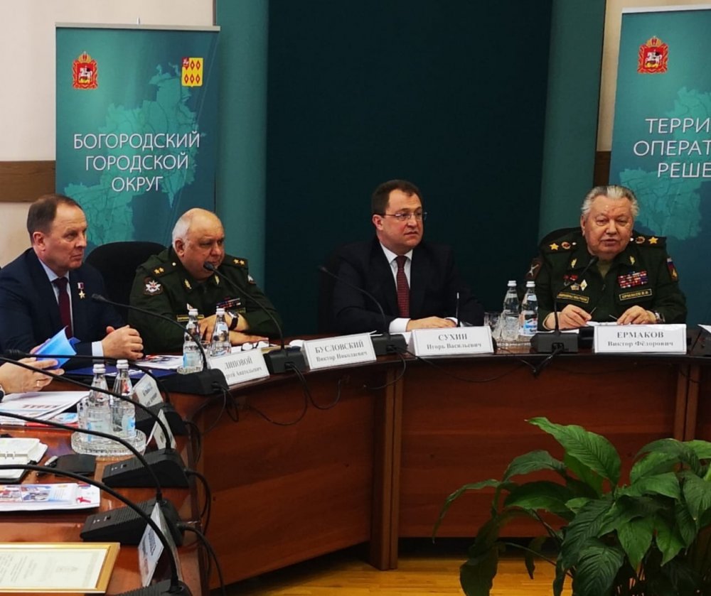 Заседание состоялось в администрации Богородского городского округа Московской области, где перед началом работы все участники смогли осмотреть выставку-экспозицию военно-патриотических проектов. В начале заседания выступил председатель Совета ОООВ ВС РФ генерал армии Ермаков Е.Ф. с докладом об основных направлениях взаимодействия ветеранских организаций ВС РФ, ДОСААФ России и ВВПОД «ЮНАРМИЯ» в период подготовки и празднования 75-й годовщины Победы в Великой Отечественной войне 1941-1945гг.