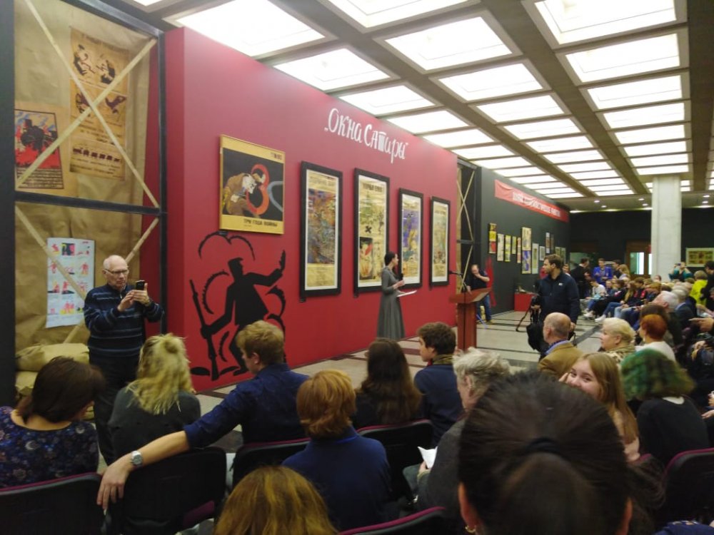 В музее была организована научно-практическая конференция «Окна РОСТА». Курсанты и студенты познакомились с выставкой сатиры, историей создания и краткой биографией авторов политической сатиры.