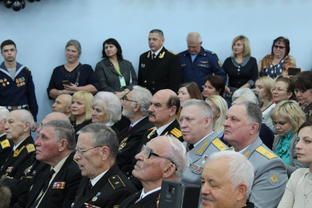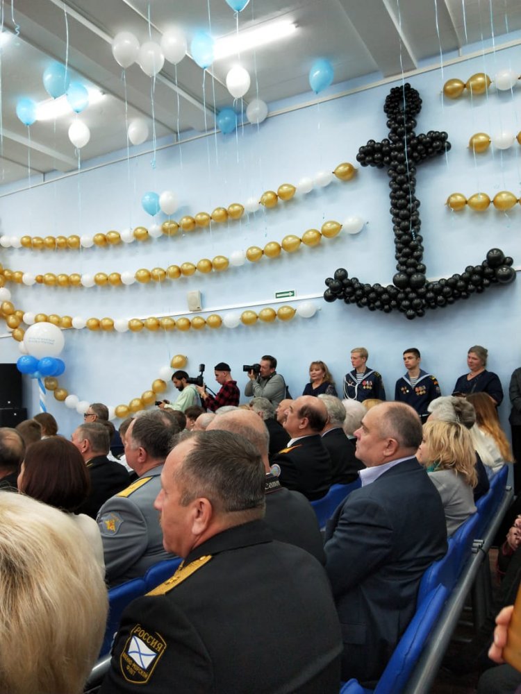 Председатель ДОСААФ города Москвы Ниниченко Вячеслав Иванович со сцены поздравил собравшихся с праздником, рассказал о важной роли ДОСААФ города Москвы в обучении призывников морским дисциплинам.