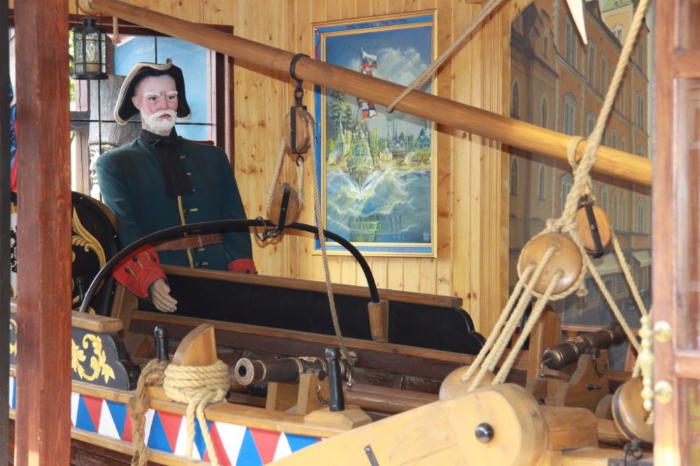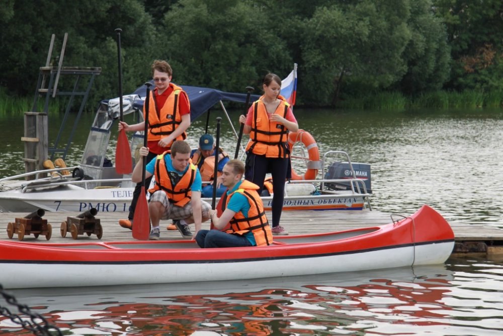 Команда военно-исторической реконструкции клуба продемонстрировала «морской бой» на трех шлюпках с установленными на них специальными пушками, стреляющие теннисными мячиками.