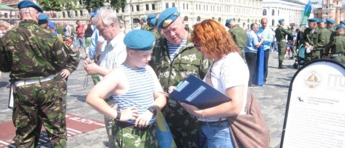 В праздновании 87-й годовщины образования Воздушно-десантных войск на Васильевском спуске приняли участие специалисты Московского Городского стрелково-спортивного клуба ДОСААФ города Москвы