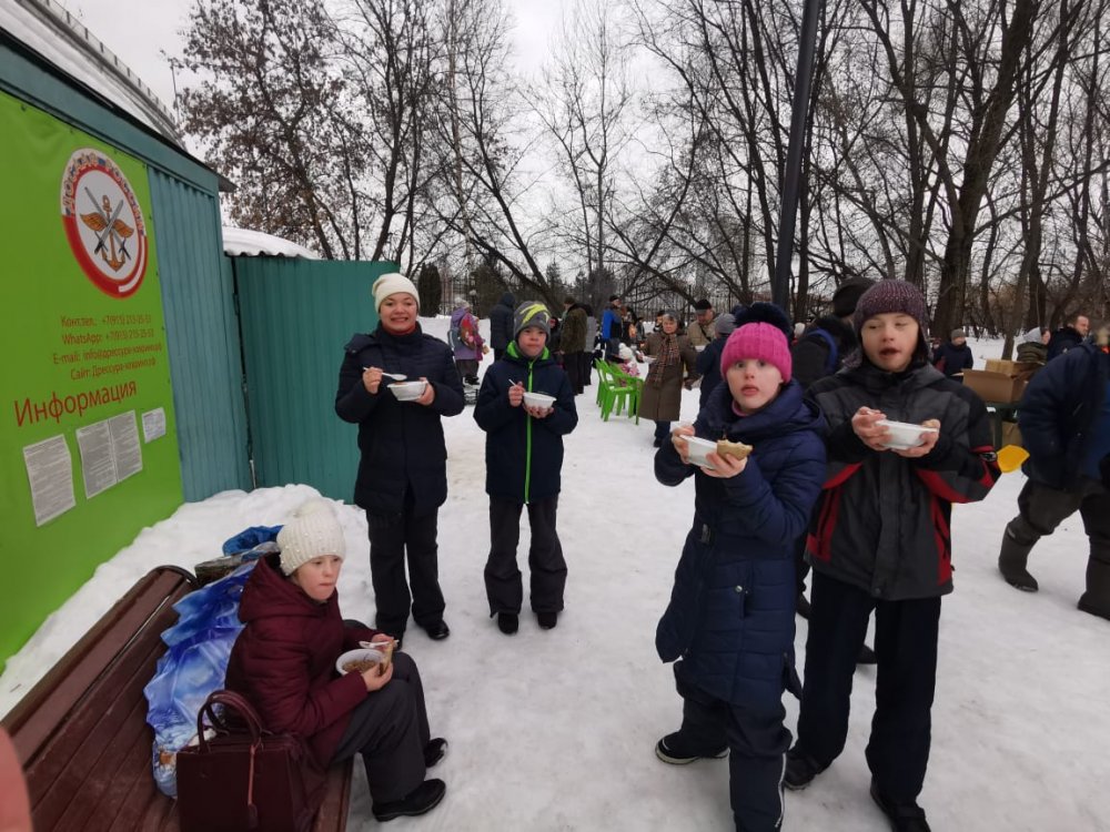 В празднике приняли участие детеи с ограниченными и их родители. В программе мероприятия были показательные выступления кинологов клуба и их питомцев, катание на "ватрушках" и другие игры на свежем воздухе. К услугам гостей и участников Ёлки была полевая кухня, с настоящей армейской кашей и сладким чаем. В конце праздника Дед Мороз вручил детям подарки.