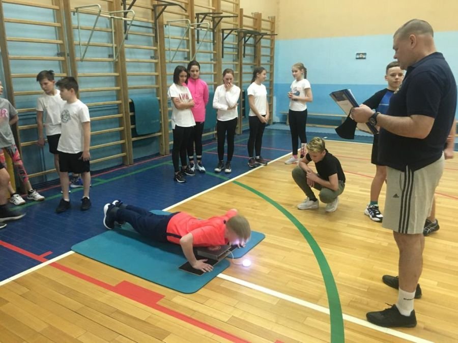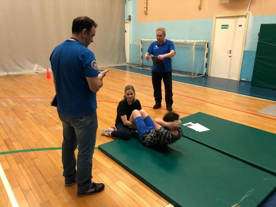 На площадке ГТО были организованы места для тестирования подтягивания из виса на высокой перекладине, сгибание и разгибание рук в упоре лежа на полу, рывок гири, поднимание туловища из положения лежа на полу, прыжок в длину с места, наклон вперед из положения стоя.
