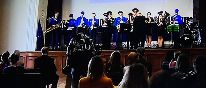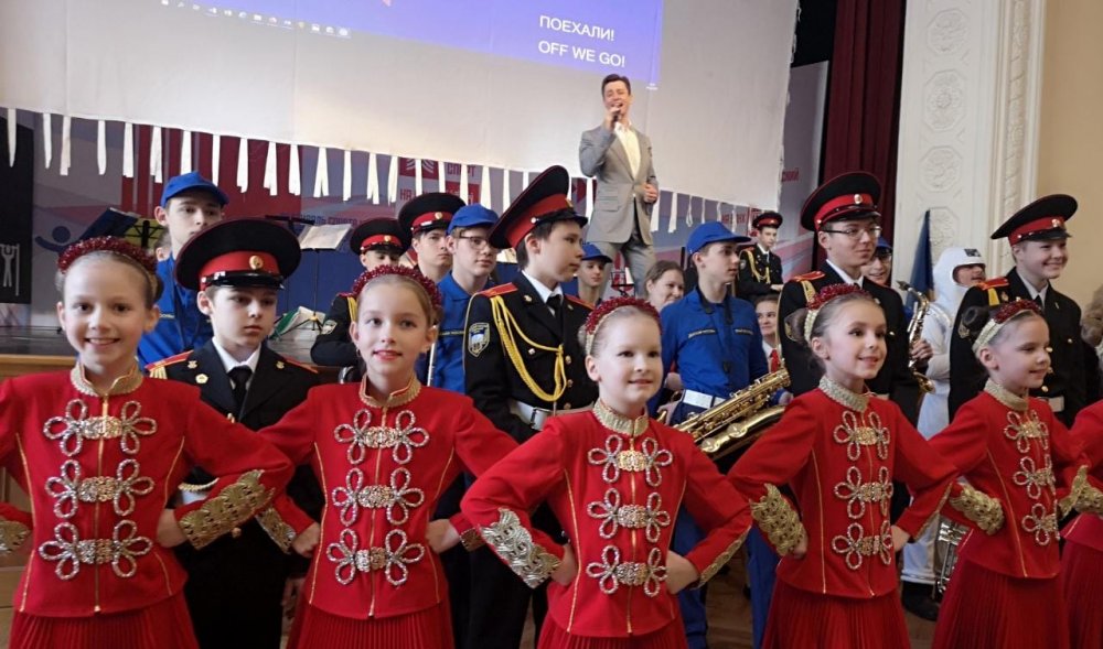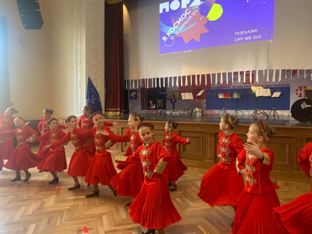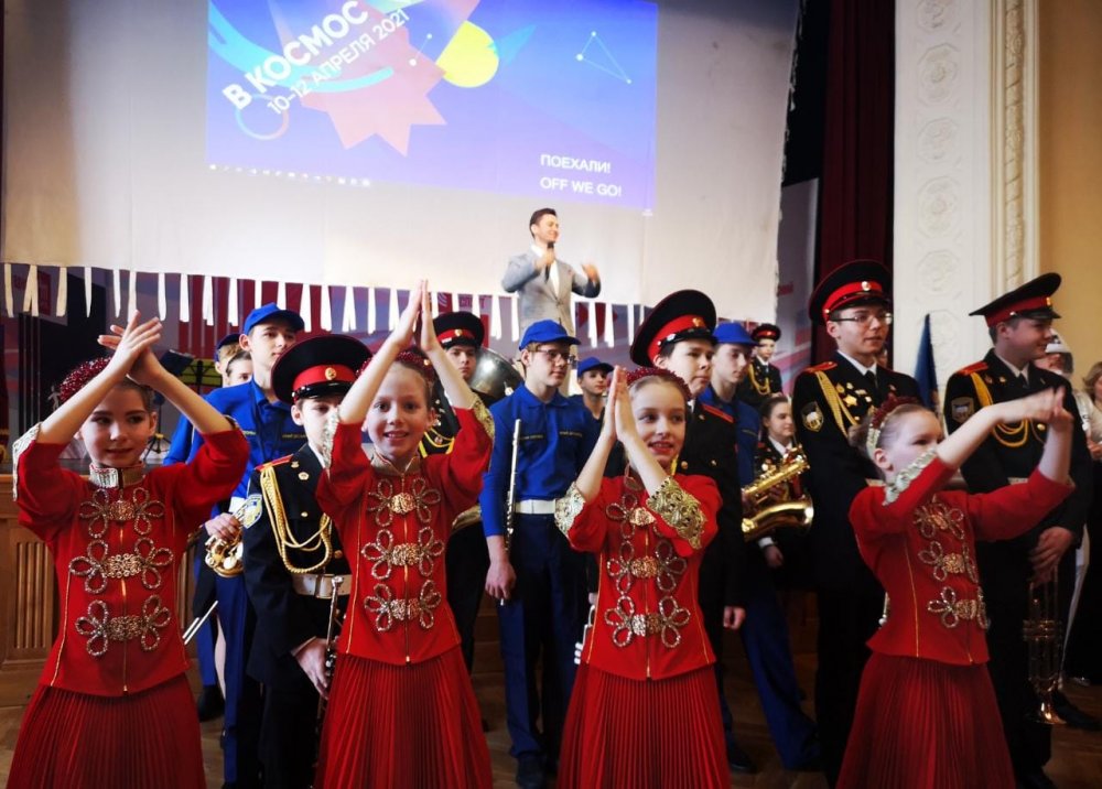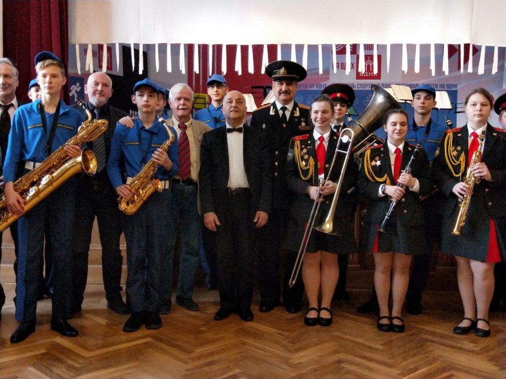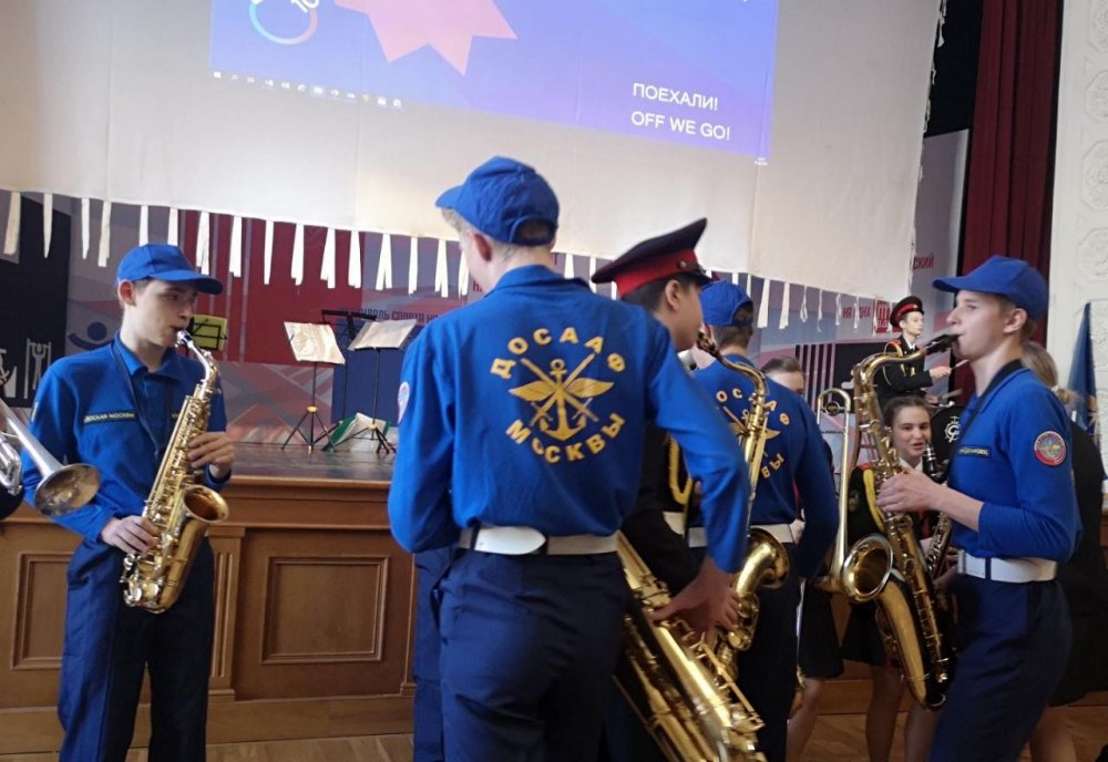 Праздничную атмосферу в зале создавали эстрадный духовой оркестр школы № 1770 "Юный ДОСААФовец Москвы", детский танцевальный коллектив " Русская мозаика" и другие творческие коллективы.
