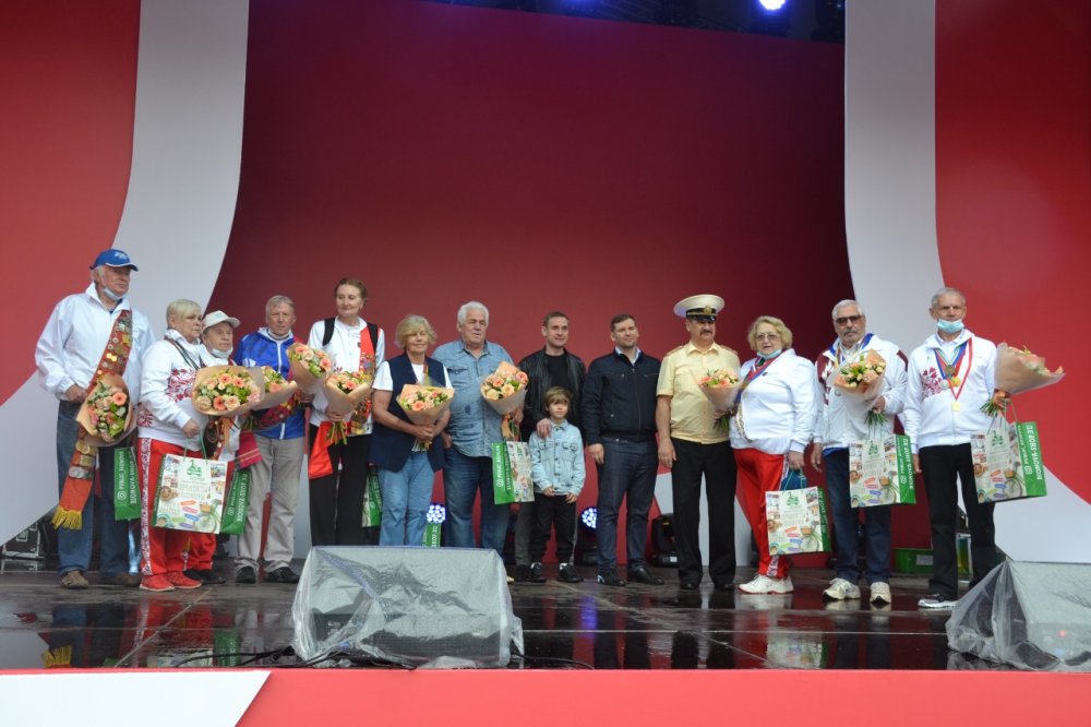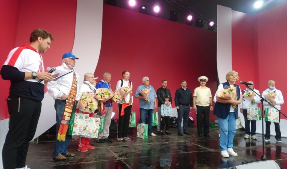 Почетные гости приняли участие в церемонии награждения юных спортсменов знаками комплекса ГТО, а также в поздравлении ветеранов спорта.