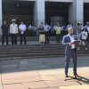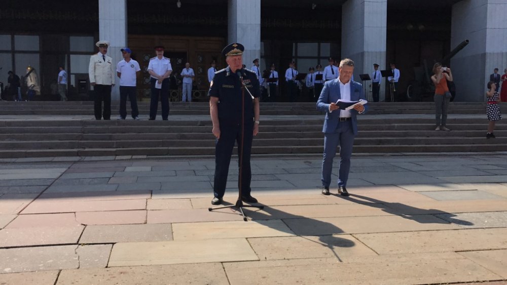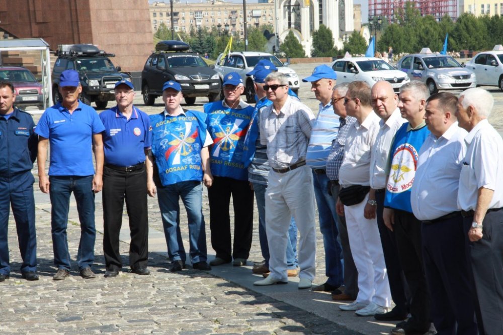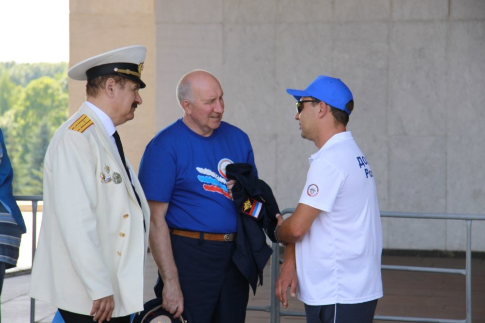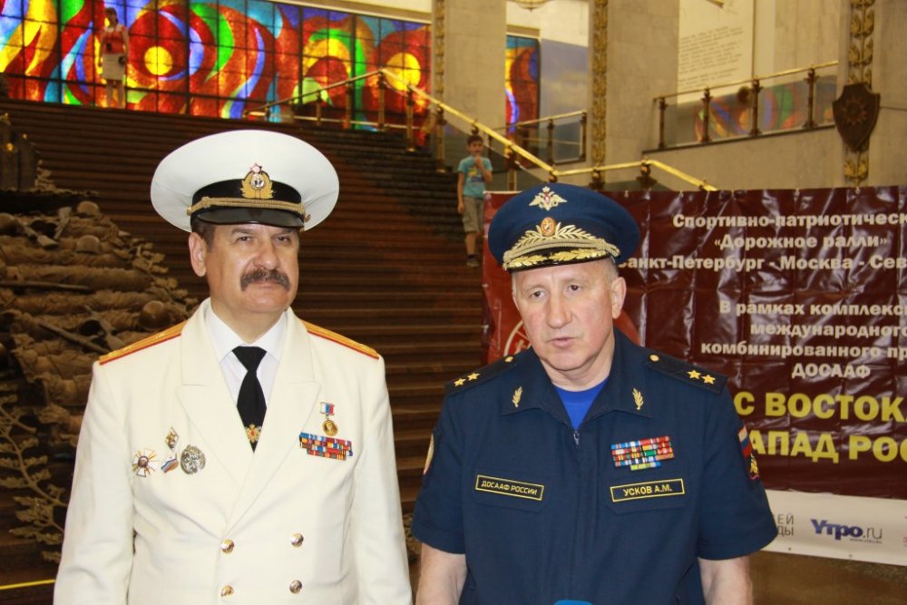 Торжественный митинг начался у главного входа в Музей Победы с приветствия участников автопробега «Дорожное ралли», которые въезжали на площадь Поклонной горы. Открыл митинг председатель ДОСААФ города Москвы Вячеслав Ниниченко. Первым поприветствовал участников первый заместитель председателя ДОСААФ России, генерал-лейтенант Александр Усков: – «Я рад вас приветствовать на Поклонной горе. В пятницу, 11 августа автопробег стартовал от Петропавловской крепости города Санкт-Петербург, который проследует по городам федерального значения – это Санкт-Петербург, Москва и Севастополь. По маршруту движения колонна будет принимать участие в торжественных мероприятиях. Этот автопробег входит, в том числе в основную часть автопробега, посвященного 90-летию ДОСААФ России. Хочу пожелать всем участникам автопробега хорошего настроения, чтобы была хорошая погода и нормальная дорога, в добрый путь вас всех».