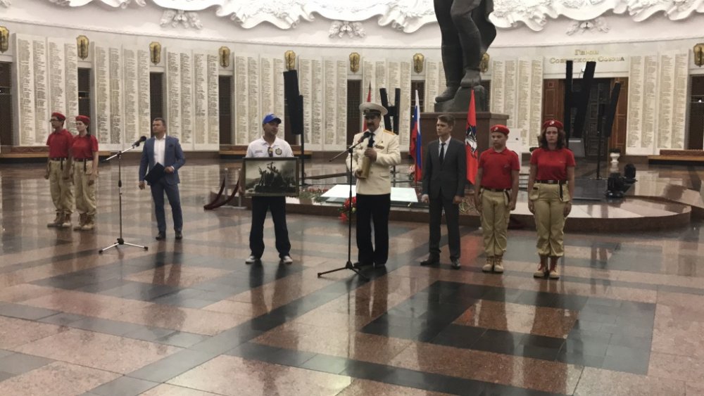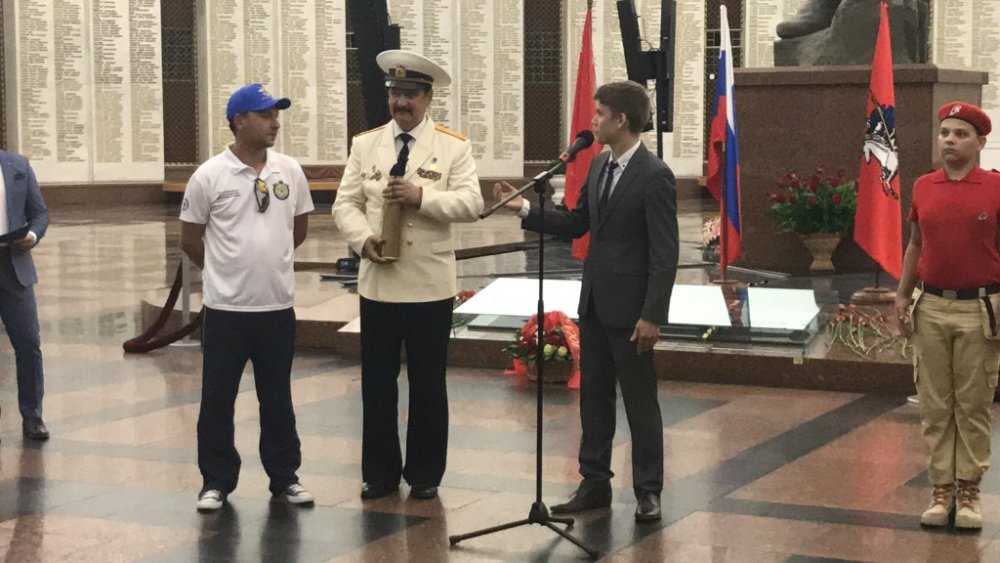 Павел Кудрявцев передал капсулу с землей председателю ДОСААФ города Москвы Вячеславу Ивановичу Ниниченко для вручения её в Музее-заповеднике «Бородинское поле»!