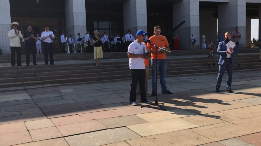 Далее Павел Кудрявцев сказал: «Дорожное ралли совершит завершающую остановку в Севастополе, и от Музея Победы мы передаем памятный подарок Государственному музею героической обороны и освобождения Севастополя – это репродукция рисунка «Севастополь освобожден» из серии «Героический Севастополь художника П.И. Баранова». Принял картину руководитель автопробега Константин Журавлев.