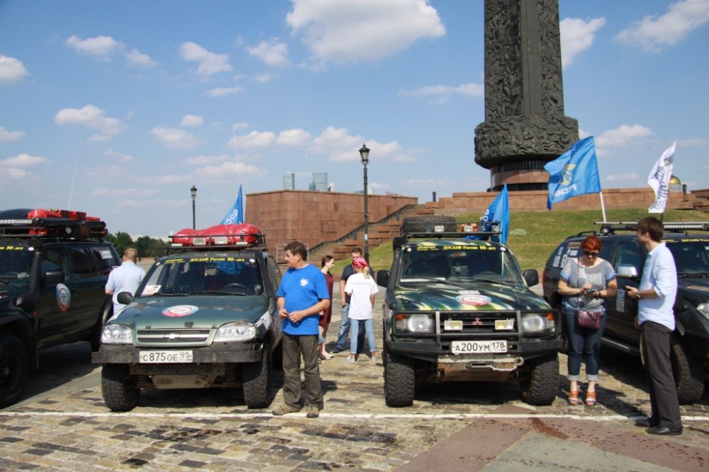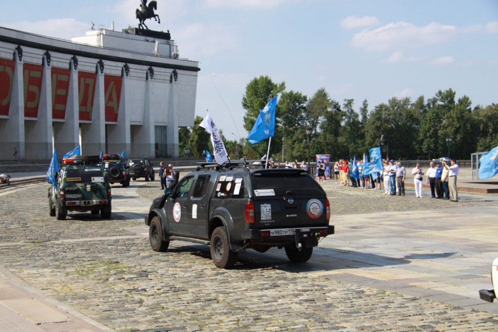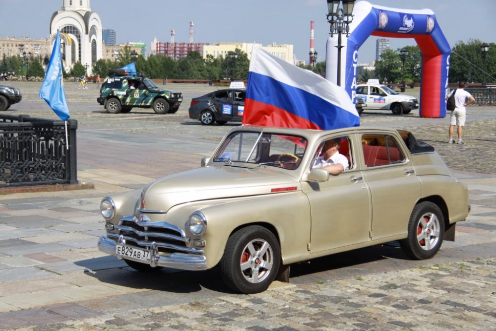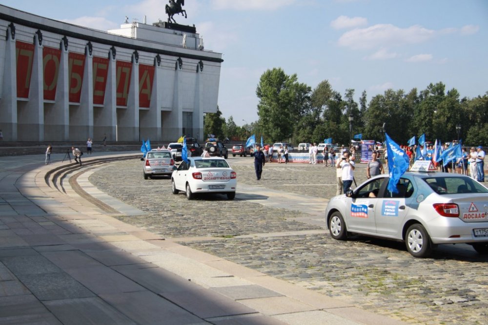«Поехали», – скомандовал председатель ДОСААФ Москвы Вячеслав Ниниченко и колонна автомобилей начала движение с площади Поклонной горы под марш Славянки.