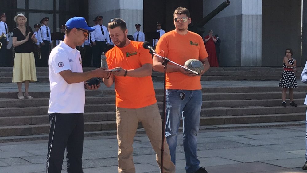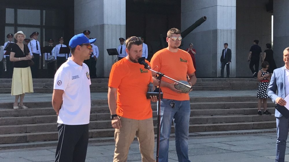 Участники 5000-километрового арктического автопробега «Север наш», организованный внедорожным клубом «Леший» привезли и вручили руководителю автопробега Константину Журавлеву символ дорожного ралли - это камень со дна Баренцова моря, а также местное отделение города Мурманск передало символ города в уменьшенной копии статуи «Мурманского Алеши».