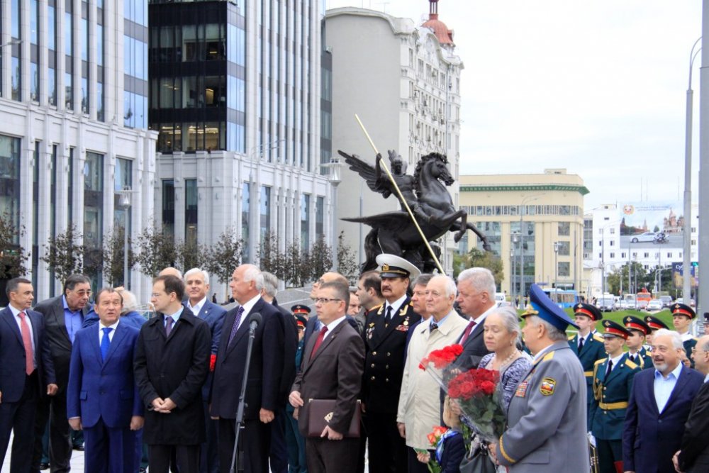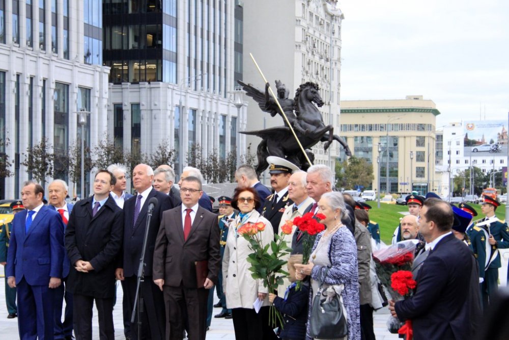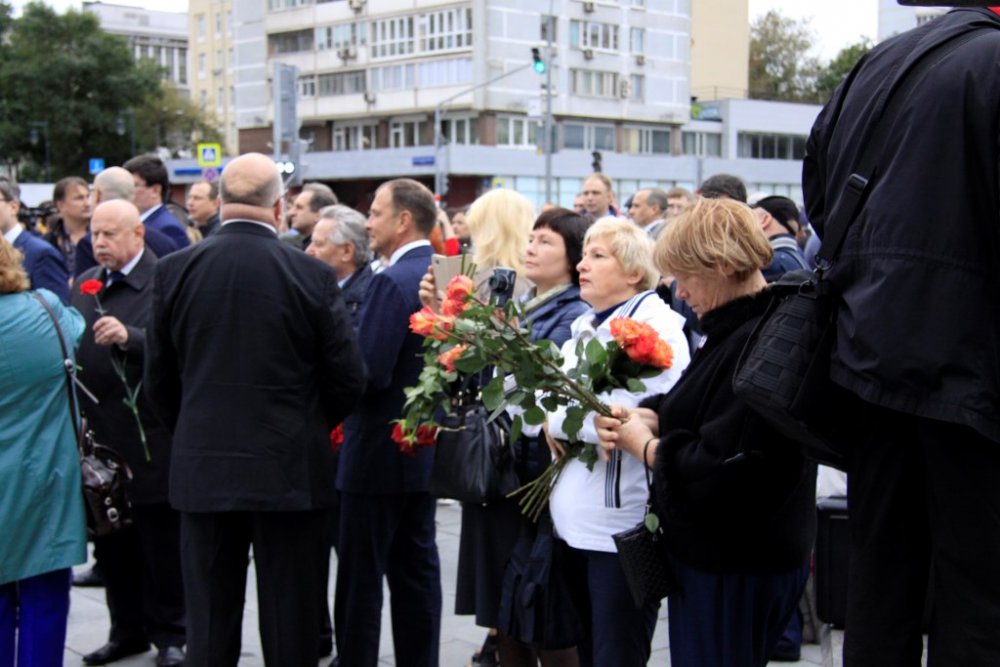 На торжественной церемонии открытия памятника М.Т. Калашникова присутствовали министр культуры РФ В.Р. Мединский, заместитель мэра по вопросам социального развития Л.М. Печатников, заместитель мэра Москвы Петр Бирюков, представители ДОСААФ России и города Москвы и другие.