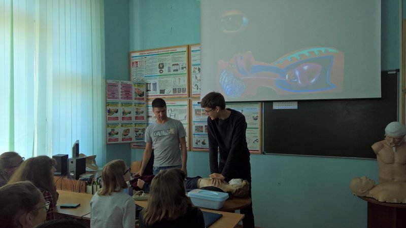 Со всеми участниками проведена экскурсия по Учебно-спортивному Центру, на которой школьники ознакомились с учебно-материальной базой УСЦ для подготовки водителей, кабинетами по изучению правил дорожного движения, устройства автомобилей, оказанию первой медицинской помощи, а также, участвовали в практическом занятии по выполнению реанимационных действий на манекенах.