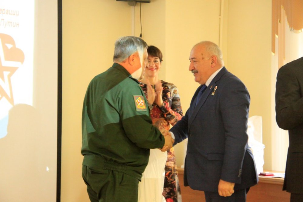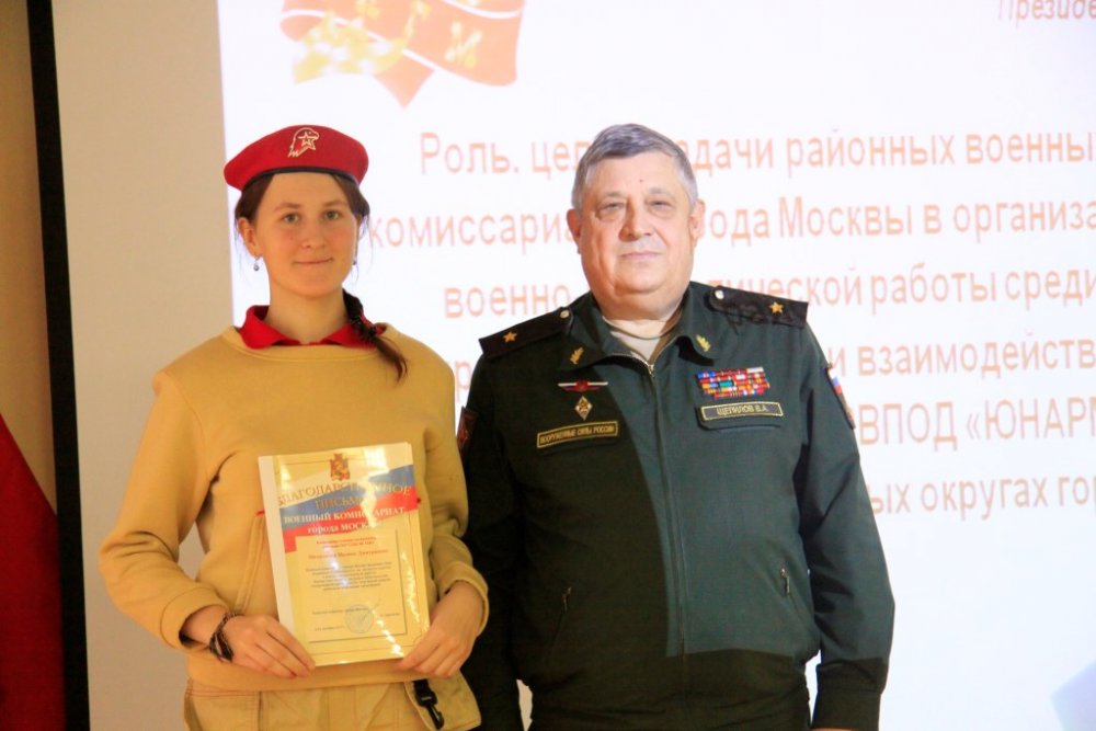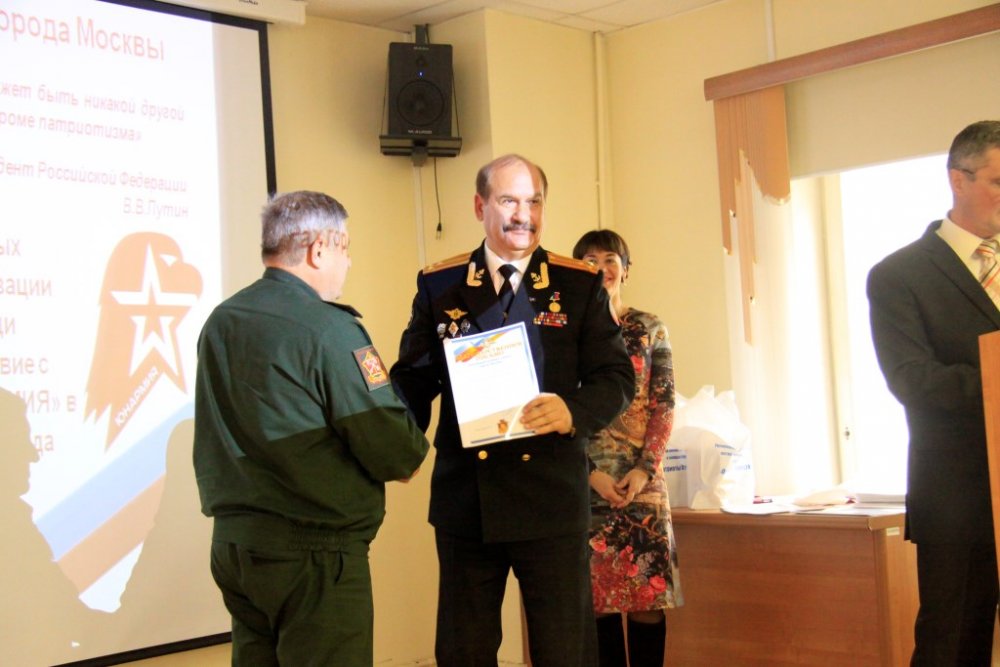 В начале Военный комиссар города Москвы Виктор Щепилов наградил благодарственный письмом председателя ДОСААФ города Москвы Вячеслава Ниниченко.