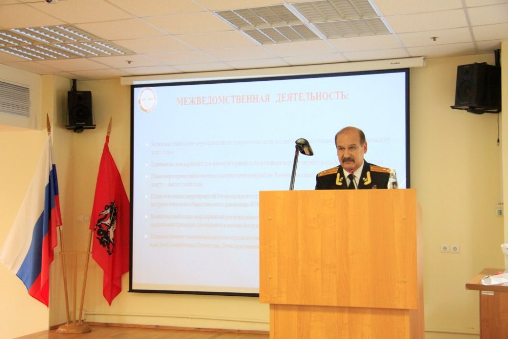 Также на занятии председатель ДОСААФ города Москвы выступил с докладом по теме: «Регламентирующие и планирующие документы по военно-патриотическому воспитанию допризывной молодежи города Москвы. Взаимодействие Московского отделения ДОСААФ России с районными военными комиссариатами города Москвы. Практический опыт военно-патриотической работы в рамках совместных мероприятий на учебный год».