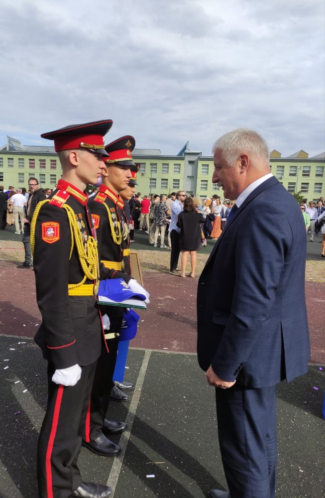 1 сентября Председатель ДОСААФ России Д.В. Добряков посетил московскую школу № 1409. Вручив награды и памятные подарки ученикам и педагогам, активно участвующим в мероприятиях ДОСААФ, Денис Валерьевич особые слова поздравления адресовал первоклассникам, для которых этот день стал началом новой и важной страницы жизни.