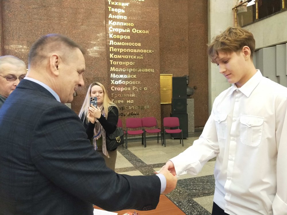 В этот знаменательный день юнармейцев поздравили и вручили удостоверения Герои России, депутаты Московской городской думы, уполномоченный по правам ребенка в г. Москве, представители ВВПОД «ЮНАРМИЯ» города Москвы, ветеранских, общественных организаций. Отличившимся в учебе и общественной жизни юнармейцам были вручены знаки «Юнармейская доблесть».