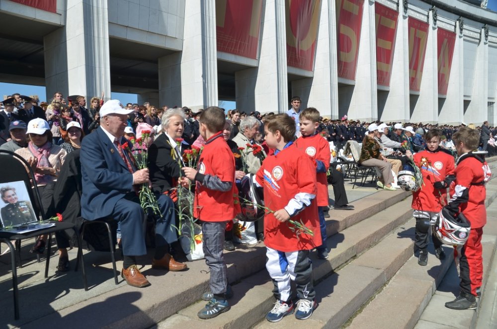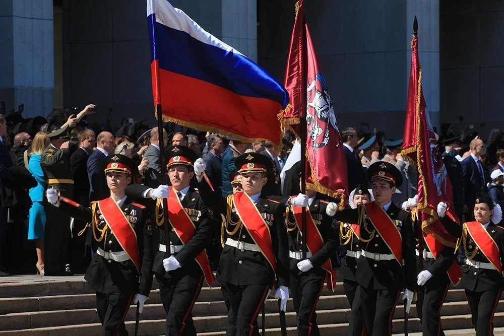 10 маяУ Центрального музея Великой Отечественной войны в полдень прошли, чеканя шаг, семиклассники - ученики кадетских классов. Всего - 45 парадных "коробок". Посмотреть на них пришли ветераны Великой Отечественной, герои страны, представители Русской Православной церкви и общественной организаций. Всего - около 20 тысяч человек.
