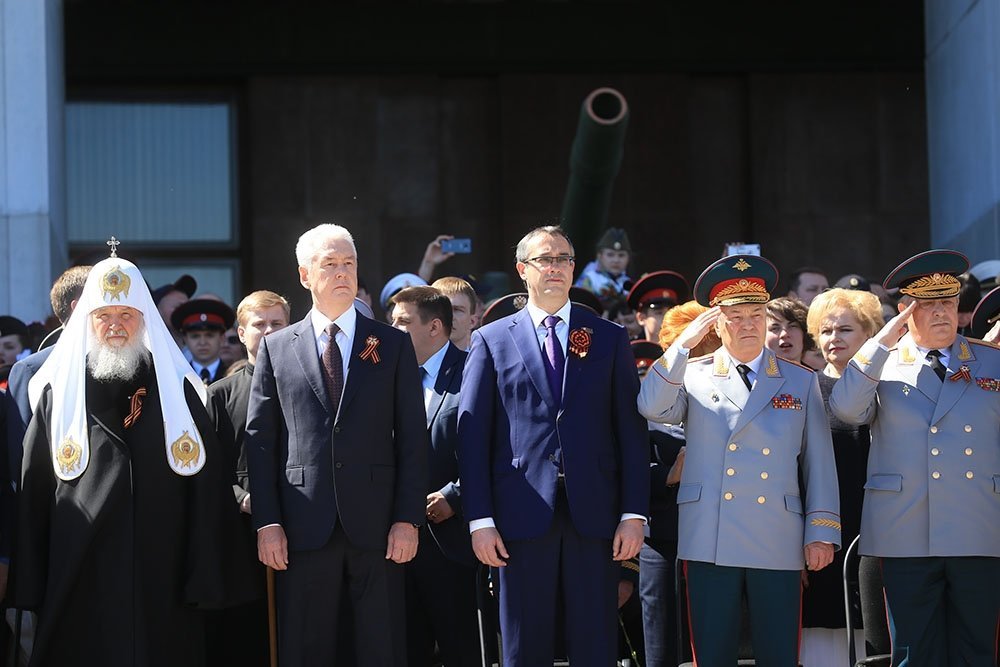 «Товарищи офицеры и кадеты, дорогие ветераны и москвичи, поздравляю вас с днем святого Георгия Победоносца, небесного покровителя Москвы, поздравляю с днем флага и герба нашего города, поздравляю с наступающим Днем Победы», - сказал он, - сегодня на Поклонной горе, святом для каждого москвича месте, собрались люди разных поколений, которых связывает любовь к родине, беззаветное служение отчизне. Вместе с нами участники Великой Отечественной войны. Ваш победный путь - это история о том, что нет ничего священнее защиты Отечества, нет ничего сильнее правды и добра, нет ничего счастливее возвращения домой с полей сражений, и нет ничего важнее сохранения исторической памяти и победных традиций нашего народа".