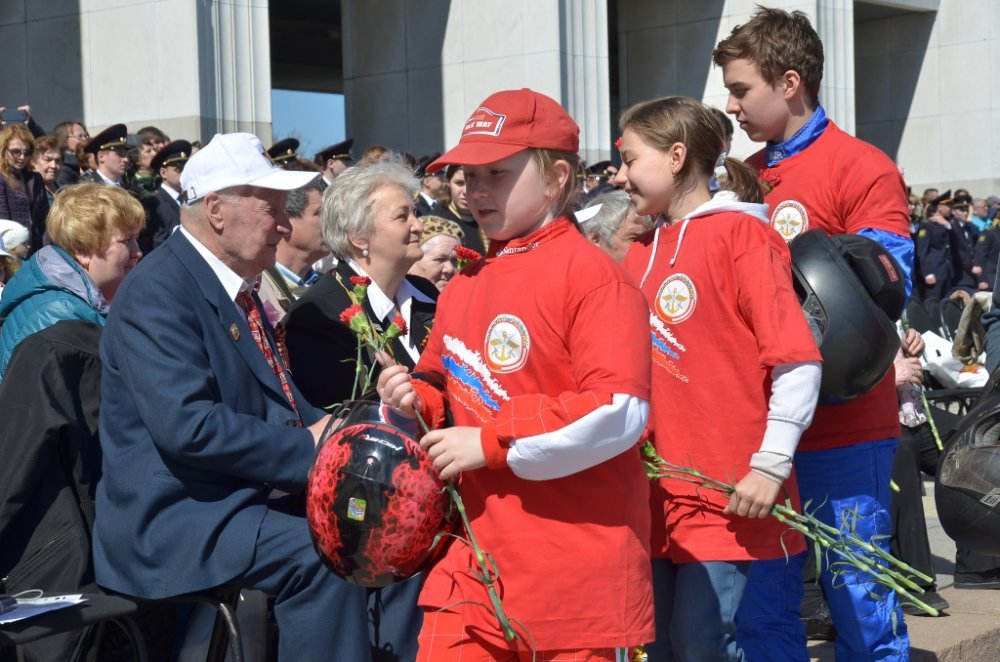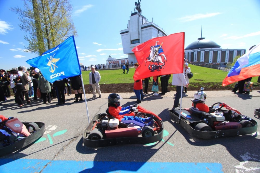 15 лучших картингистов Регионального отделения ДОСААФ России г. Москвы приняли участие в параде кадетов, которые дружным строем проехали на картах перед зрителями и участниками парада, открыв выступление художественной части мероприятия.
