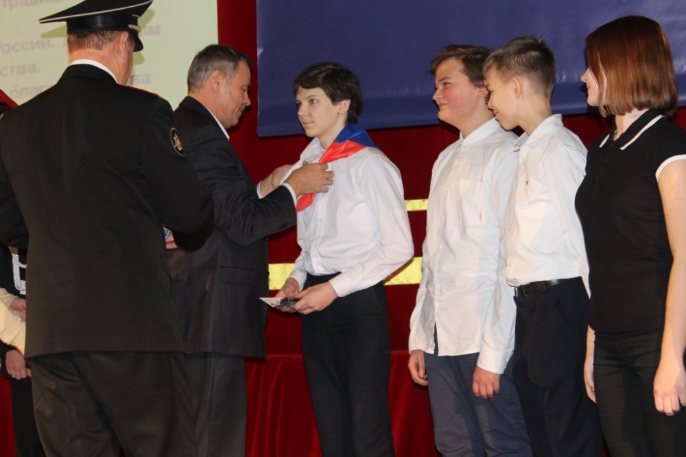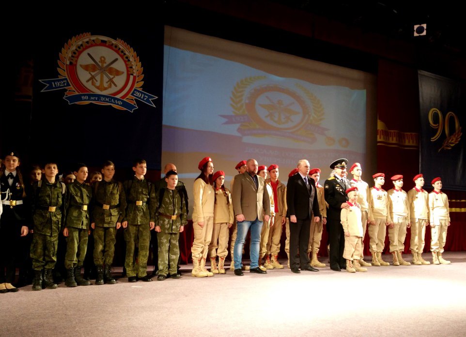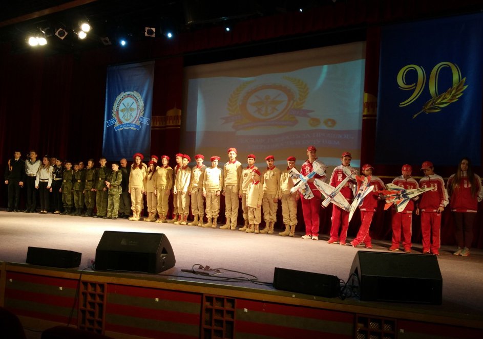На праздничном вечере, посвященному 90-летию ДОСААФ города Москвы прошло посвящение школьников в "Юные ДОСААФОВЦЫ Москвы"