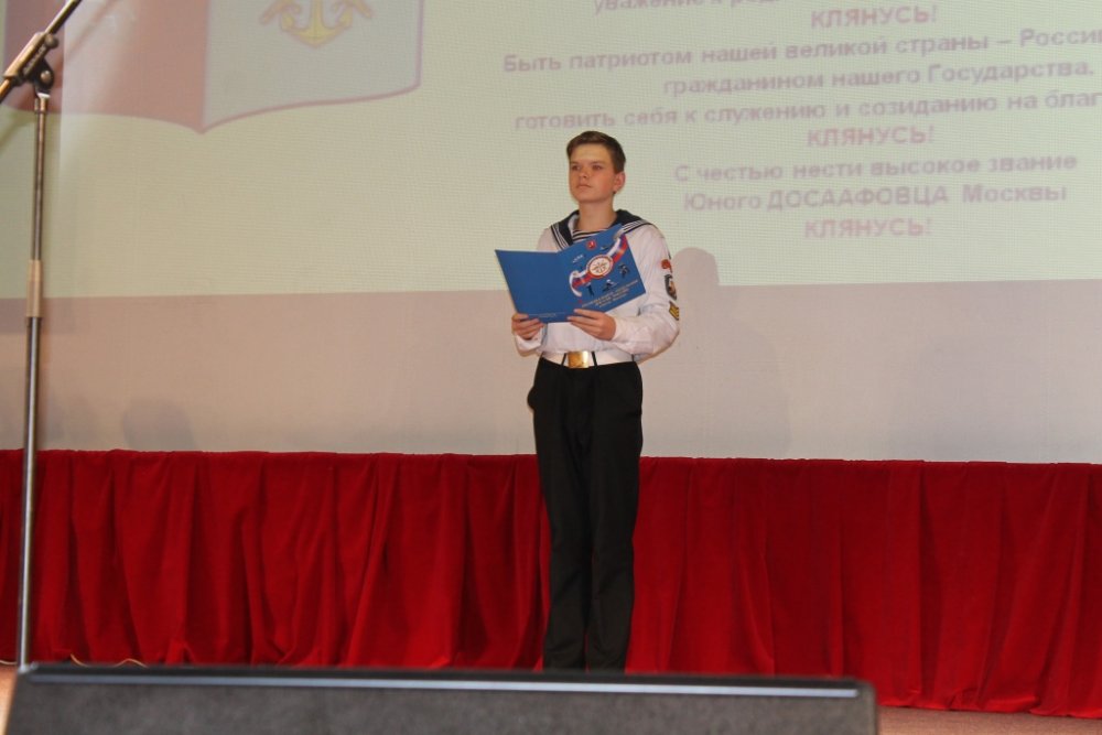 Прием школьников города Москвы в Детско-юношеское движение «Юный ДОСААФОВЕЦ города Москвы». Принятие Торжественной клятвы. Вручение значков и повязывание галстуков.