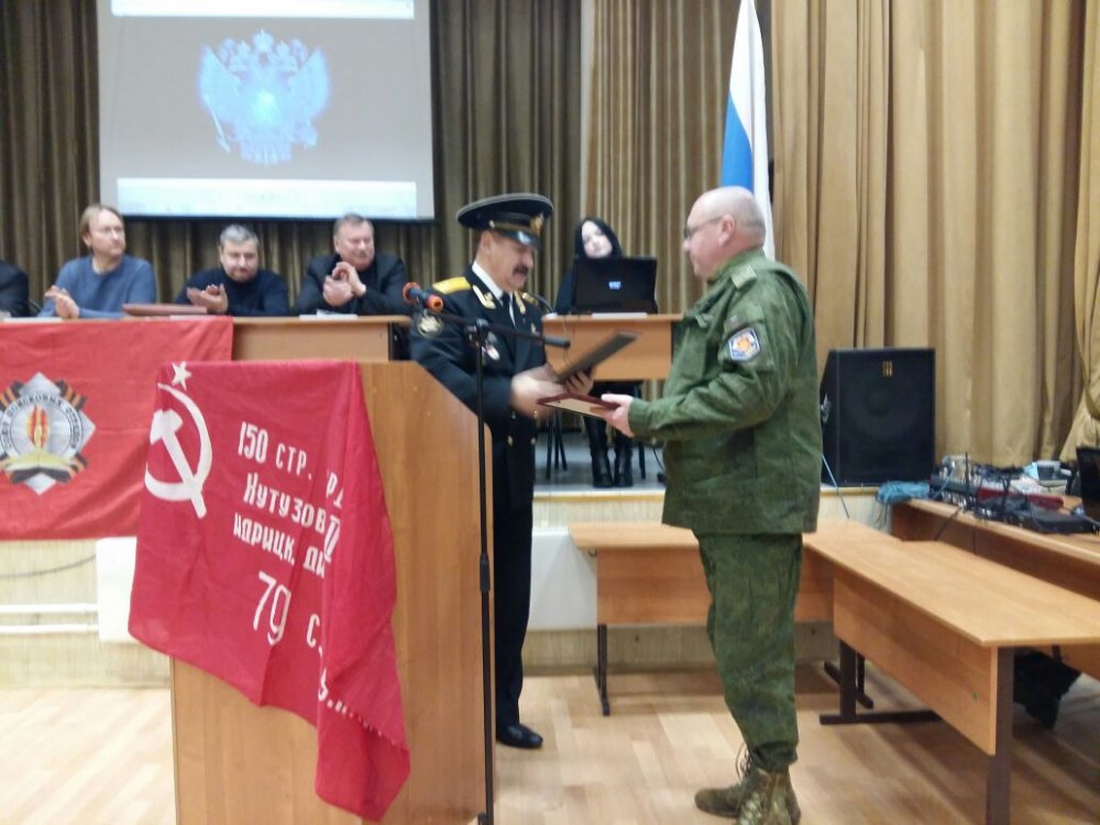 Председатель ДОСААФ города Москвы Вячеслав Иванович Ниниченко вручил грамоты кадетам факультетов Морского и специального назначения школы №1619 за активное участие в церемонии награждения "Юных ДОСААФОЦЕВ Москвы" на праздничном вечере 17 декабря 2017 года.