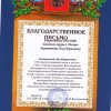 В письме были сказаны следующие слова благодарности: "Выражаем Вам огромную благодарность за организацию и проведение благотворительного Новогоднего праздника для семей с детьми с ограниченными возможностями. Спасибо за Вашу чуткость, тепло, оптимизм, неиссякаемый источник энергии. Желаем Вам и Вашим коллегам здоровья, благополучия и творческих успехов, надеемся на дальнейшее сотрудничество!"