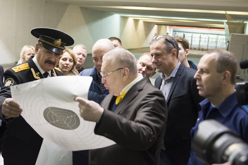 Кандидат в президенты Владимир Жириновский посетил Московский городской стрелково-спортивный клуб ДОСААФ