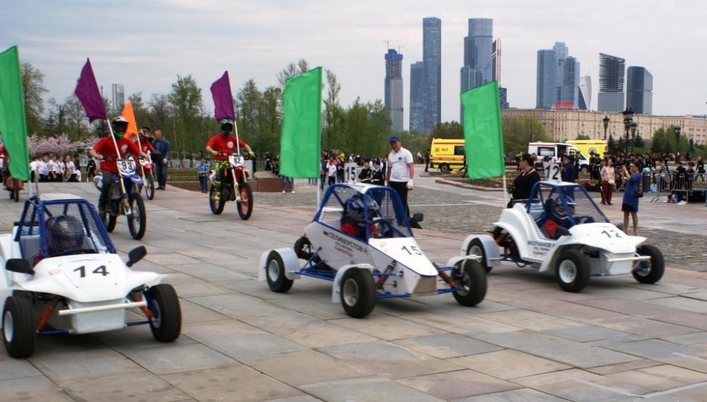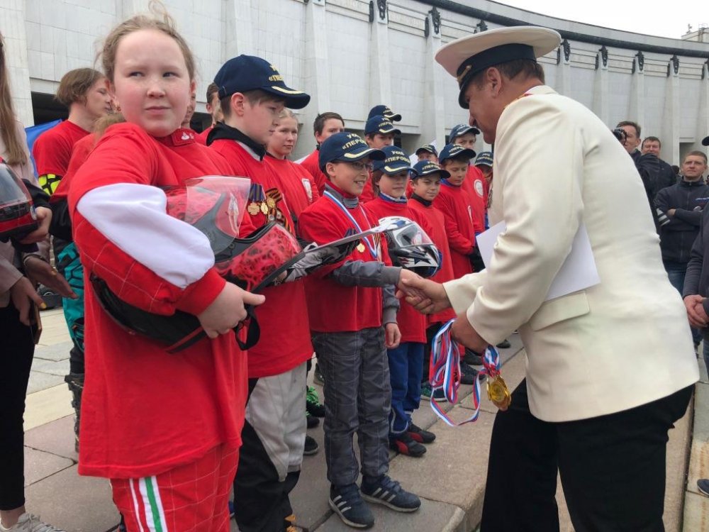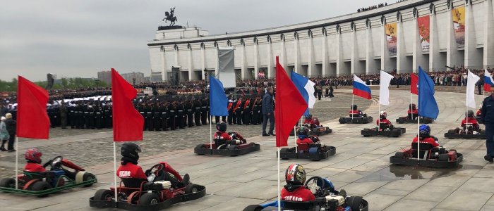 Открыли парад кадет воспитанники спортивных секций Регионального отделения «ДОСААФ России» г. Москвы, которые проехали перед участниками и зрителями мероприятия на спортивной технике - баггах, картах и мотоциклах.