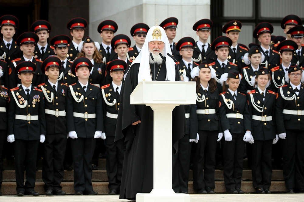 «С особым чувством обращаюсь к вам в День святого великомученика Георгия Победоносца. Собравшись в этот день вместе, вы выражаете готовность не просто любить Родину, но и готовность Родину защищать, следовать теми путями, которыми прошли ваши отцы, деды, прадеды, совершившие великие подвиги, победившие страшного врага. Став кадетами, вы уже одержали важную победу - на самими собой. Вы выбрали в качестве своего идеала служение своей Родине. Желаю вам успехов в этом нелегком и благородном деле», - сказал патриарх Кирилл.