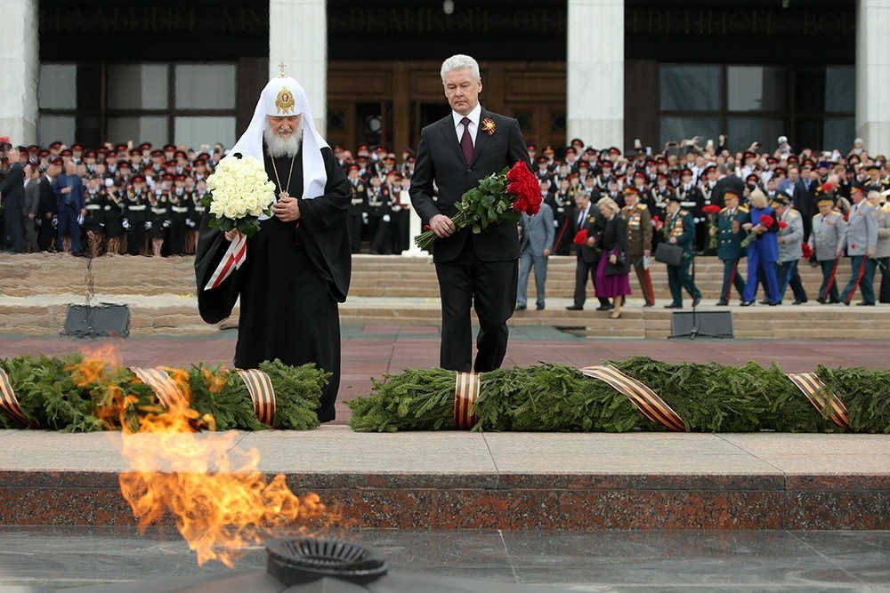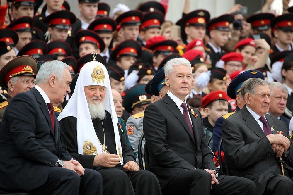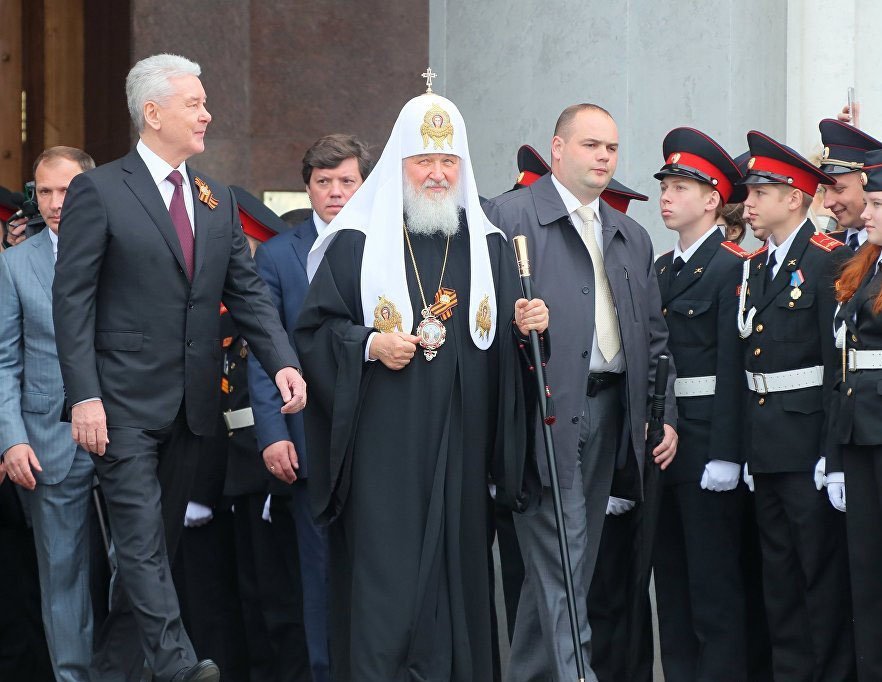 8 мая«В День герба и флага Москвы на Поклонной горе прошел Парад кадетского движения «Не прервется связь поколений», посвященный 73-й годовщине Победы в Великой Отечественной войне. На мероприятии присутствовали мэр Москвы Сергей Собянин, председатель Мосгордумы Алексей Шапошников, Патриарх Московский и всея Руси Кирилл.