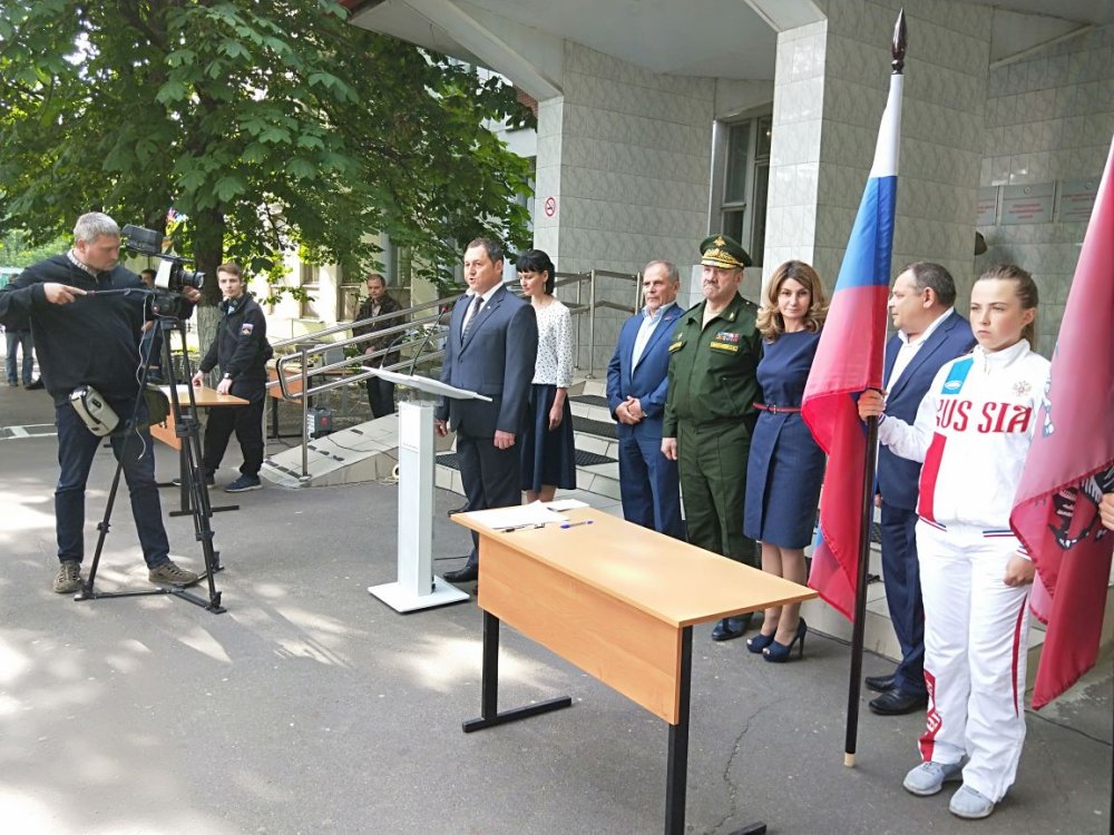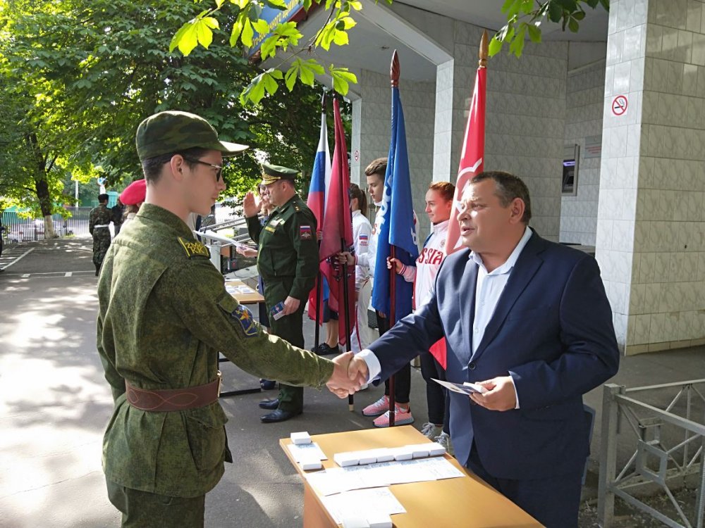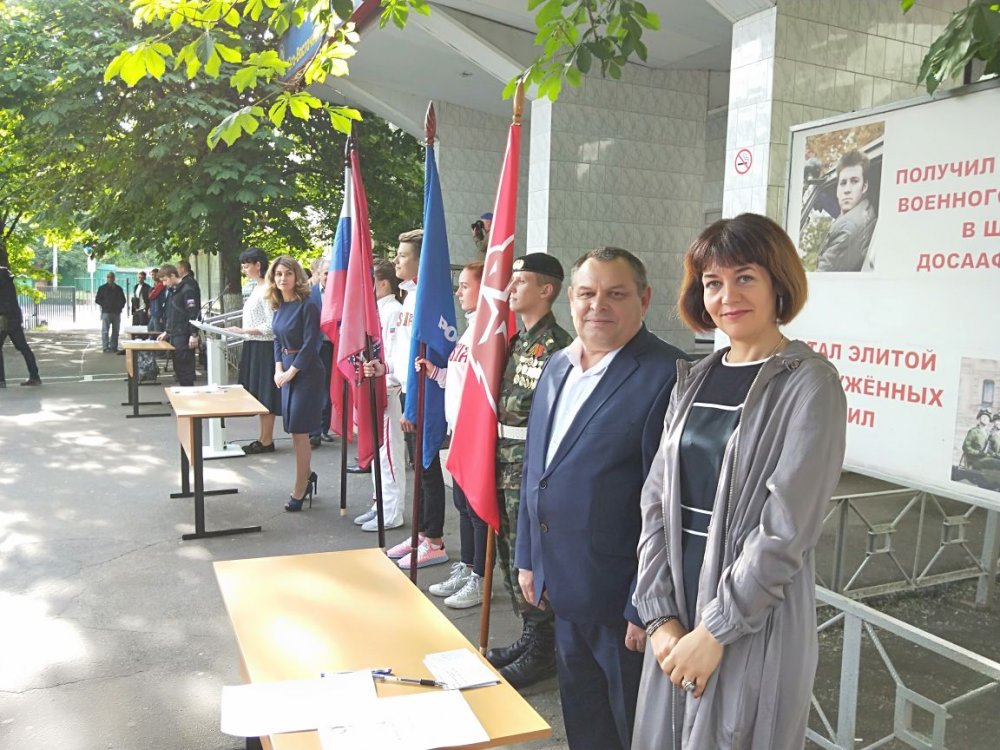 На это торжественном мероприятии поздравили и вручили свидетельство и значок парашютиста представители «Центра патриотического воспитания и школьного спорта» г. Москвы, руководители юнармейского движения, военного комиссариата Москвы старший помощник начальника отеления по военно-патриотической работе Тюрь Елена Александровна, начальник штаба местного отделения «Юнармии» ЮВАО города Москвы генерал-майор Петров Вячеслав Николаевич, руководитель военно-патриотического клуба «Трудовые резервы» Янутан Дмитрий Викторович, Директор УСЦ ДОСААФ ЮВАО г. Москвы Макушкин Анатолий Борисович, директор Московского городского Аэроклуба Солодников Александр Васильевич, заместители Председателя ДОСААФ Москвы начальник отдела по физической культуре и спорту Оленик Андрей Леонидович, начальник отдела военно-патриотической работы и связей с общественностью Фириджанова Сусанна Грантовна.