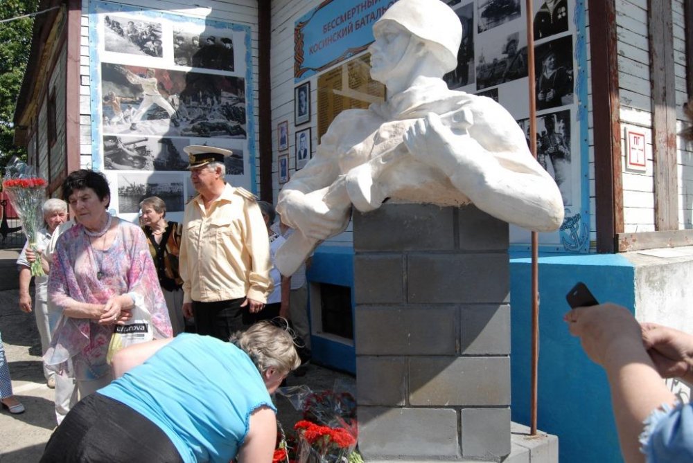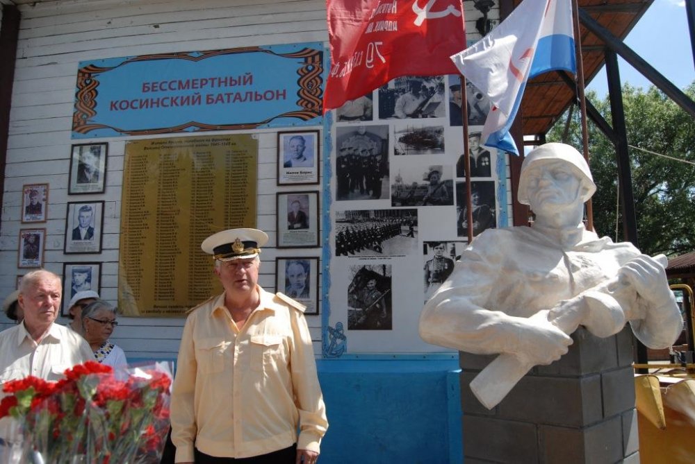 Командор клуба, капитан 1 ранга Михаил Шадрин встретил ветеранов у памятника Бессмертного Косинского батальона, где на мемориальных досках высечены имена погибших на войне жителей района. Михаил Георгиевич отметил, что задача ветеранов — передавать память о войне подрастающему поколению. Ветераны возложили цветы к памятнику Солдату, а затем к памятнику адмиралу Нахимову.