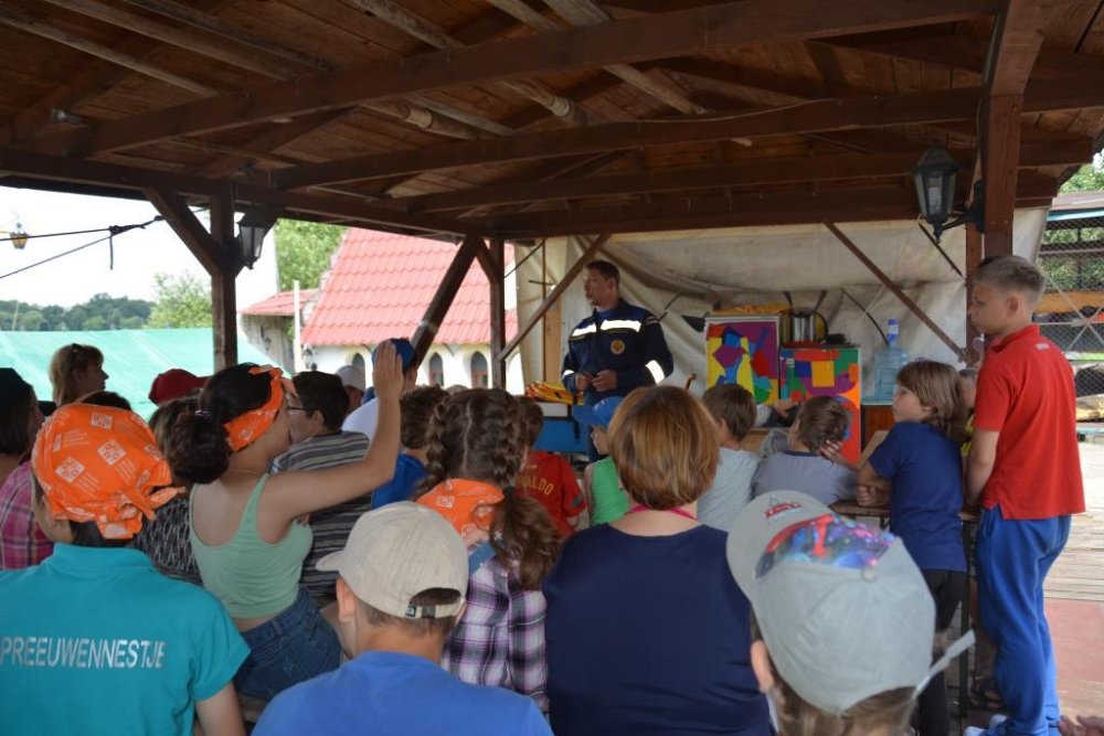 Заместитель начальника поисково-спасательной станции «Косино» Артем Ермолаев напомнил детям о безопасности на воде и мерах предосторожности при отдыхе у водоема.
