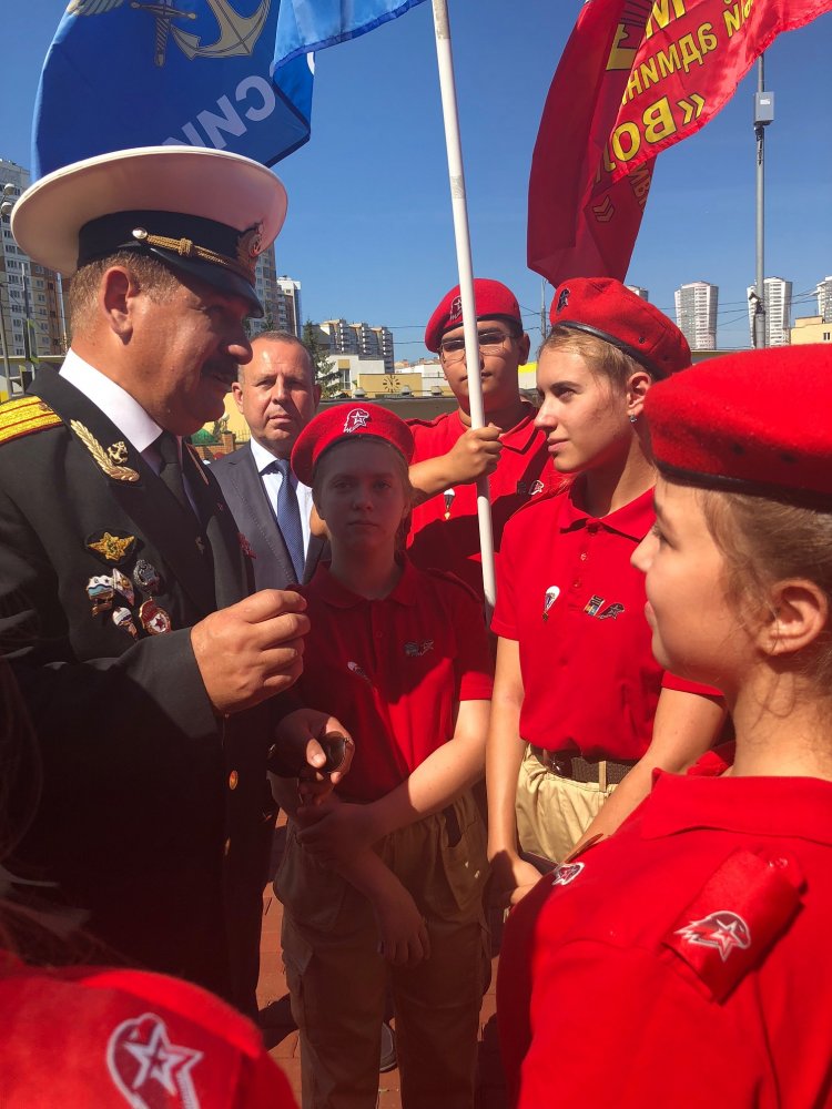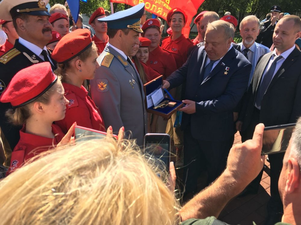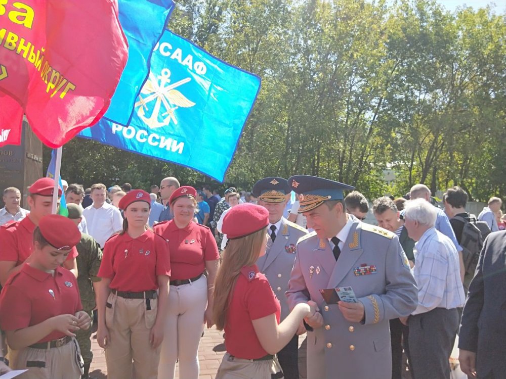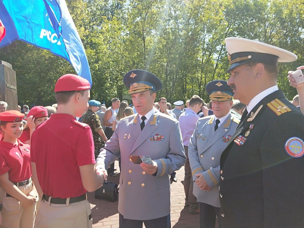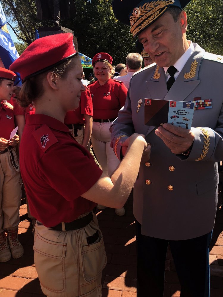 После возложения цветов к памятнику Председатель ДОСААФ России генерал-полковник А.П.Колмаков вручил знаки и свидетельства «Юного ДОСААФОВЦА» Москвы юнармейцам.
