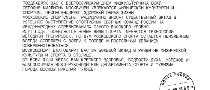Поздравление Руководителя Департамента спорта и туризма города Москвы